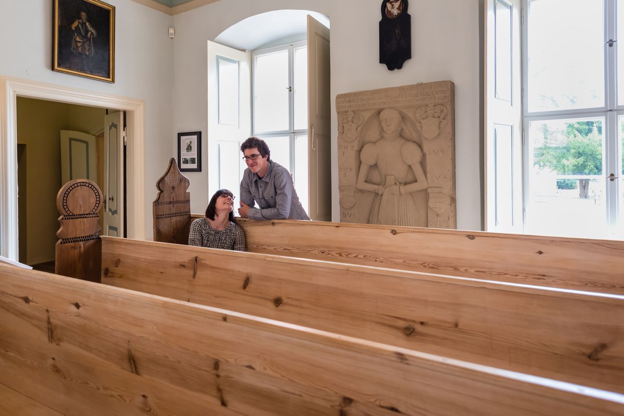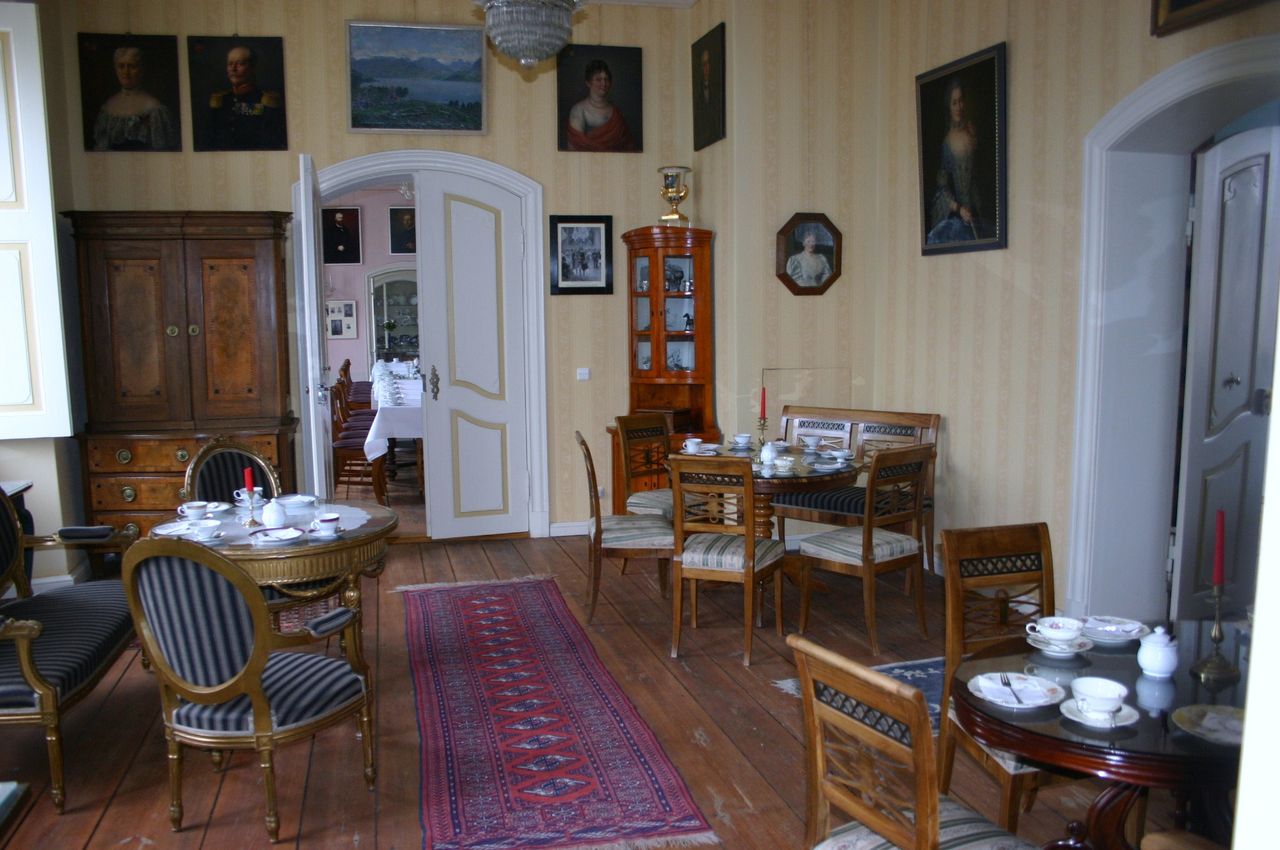 Im Erdgeschoß Einrichtung eines märkischen Gutshauses mit Möbeln, Porzellan, Glas, Silber vorwiegend aus der Familie Gans zu Putlitz, die hier fast 800 Jahre ansässig war. Esszimmer und Nebensalons werden für Kaffeetafeln und Empfänge benutzt. Kapelle mit Einrichtungsgegenständen der abgerissenen Schlosskapelle von 1572 wird für Gottesdienste, Trauungen und Taufen genutzt.