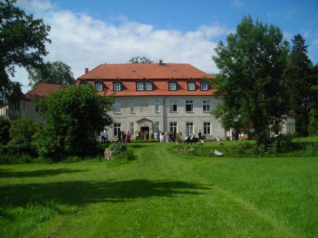 Das Hauptgebäude des Schlosses stammt in der derzeitigen Form aus dem Jahr 1738. Im Obergeschoss wurden 3 Ferienwohnungen eingerichtet. Die Räume im Erdgeschoss mit ihren Stuckkaminen und -verzierungen wurden Schritt für Schritt restauriert.