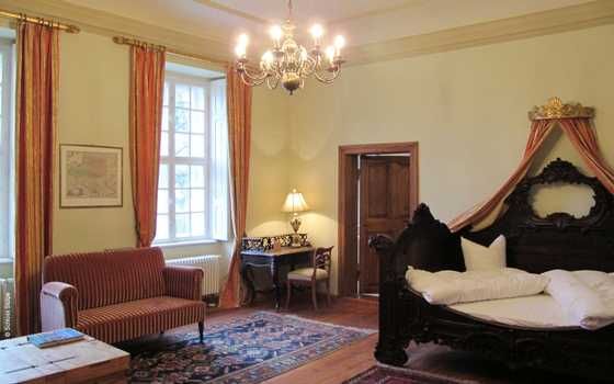 Nach der Sanierung des Schlosses wurde dieses mit viel Liebe zum Detail und zu einer authentischen Ausstattung eingerichtet. Für die Ausstattung der Räume trug die heutige Besitzerin Antiquitäten und Gemälde aus ganz Europa zusammen, die jedem Zimmer eine ganz individuelle Note verleihen.