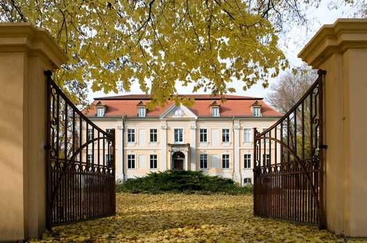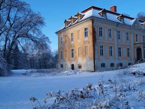 Zentrum des ehemaligen Rittergutes in einem ca. 12 ha großen Schlosspark mit großzügiger Einfahrt ist der neunachsige Barockbaus von 1754.
