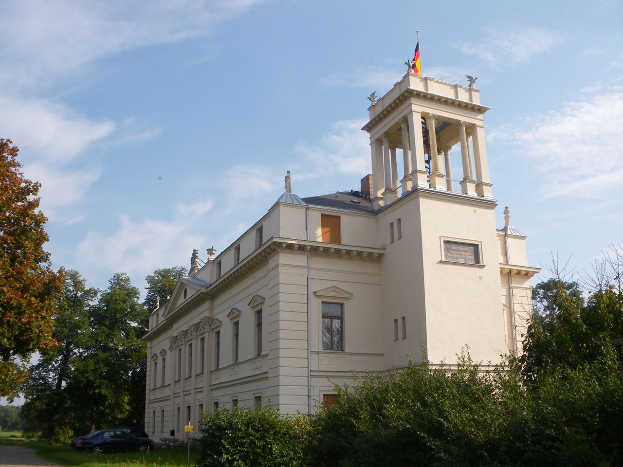 es entstand ein zweigeschossiger Rechteck- Bau mit seitlichem Belvedere-Turm.