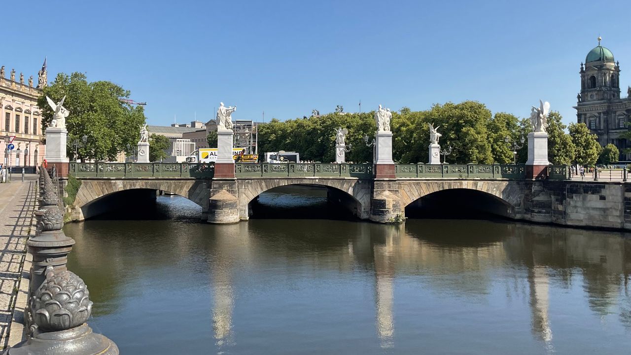 Historische Brücke überquert den Spreekanal. Verbindungsstraße zwischen der Staatsoper “Unter den Linden”/ Deutsches Historisches Museum (Zeughaus) und dem Dom/Fernsehturm(Alexanderplatz).