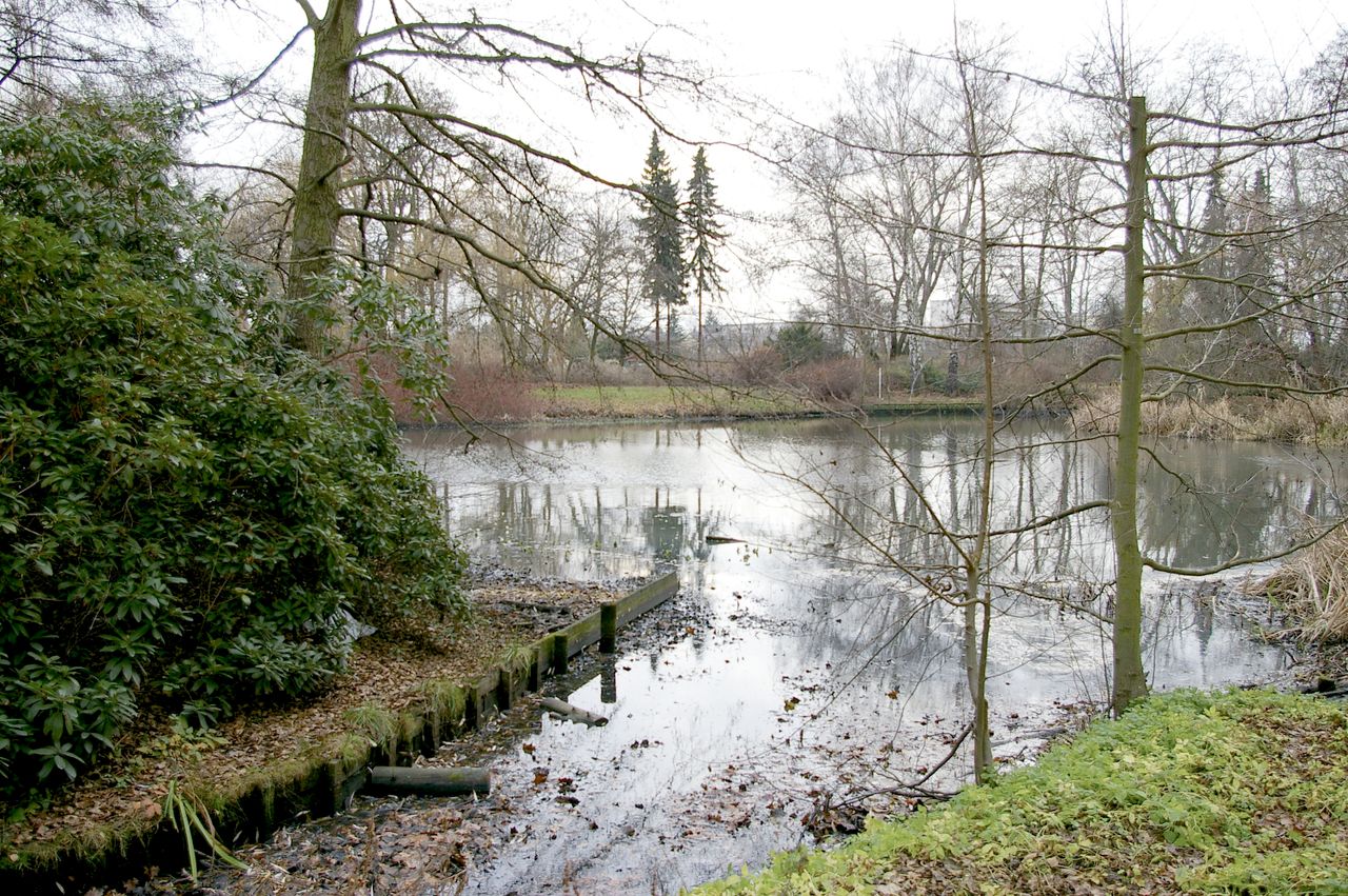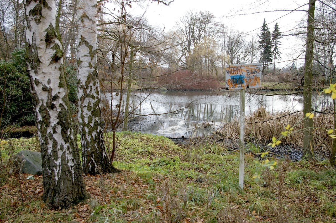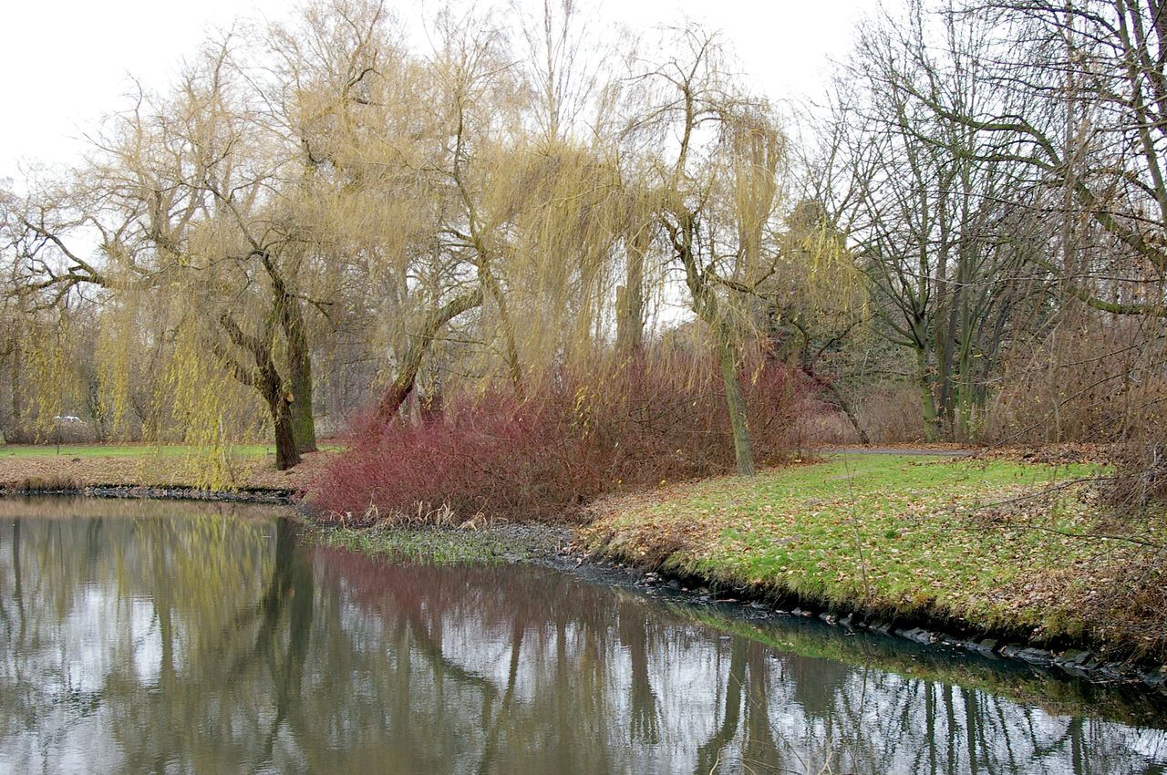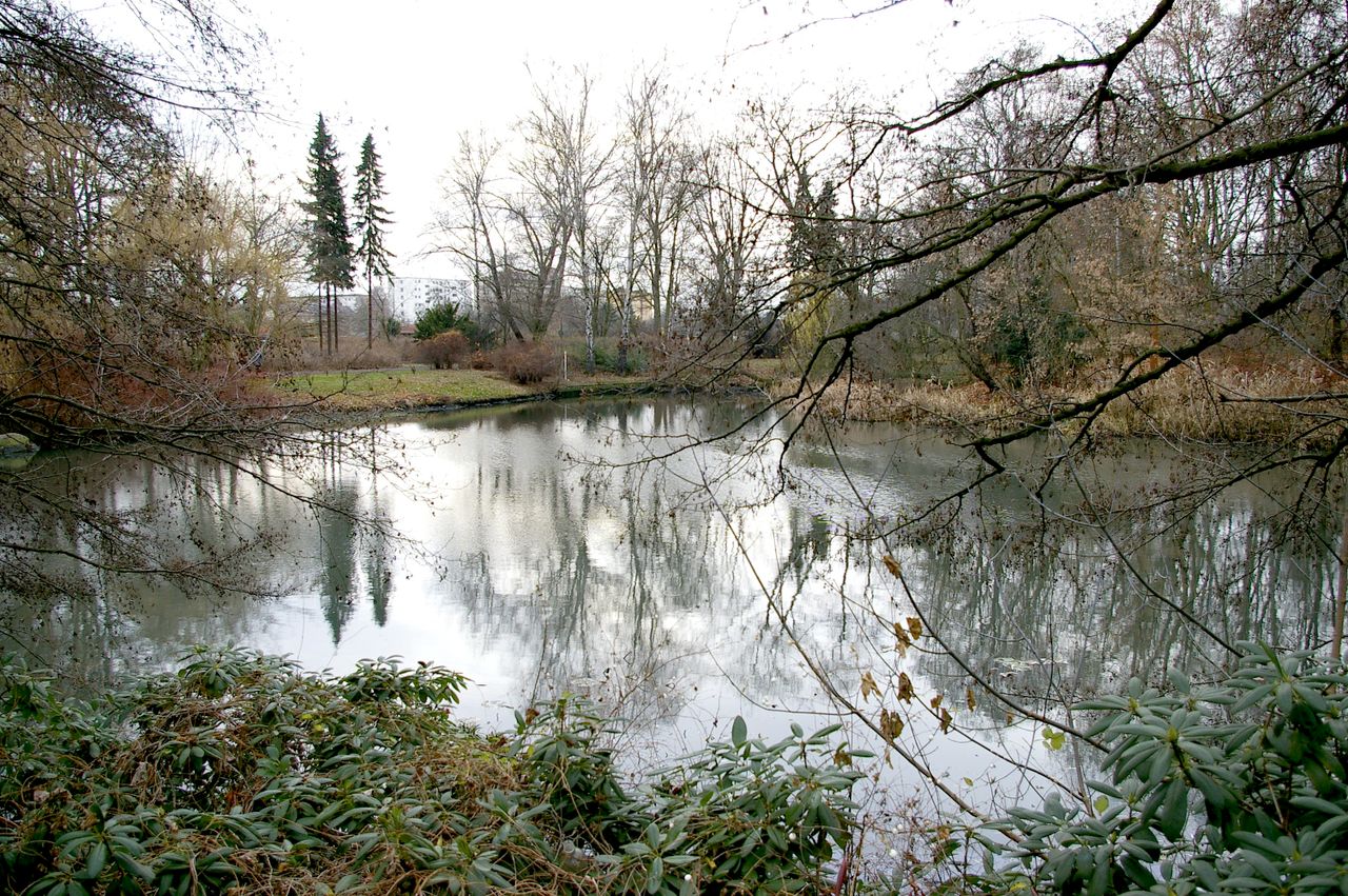 Parkanlage mit angelegtem Schwanenteich in der Nähe der S-Bahnstation Alt Reinickendorf.