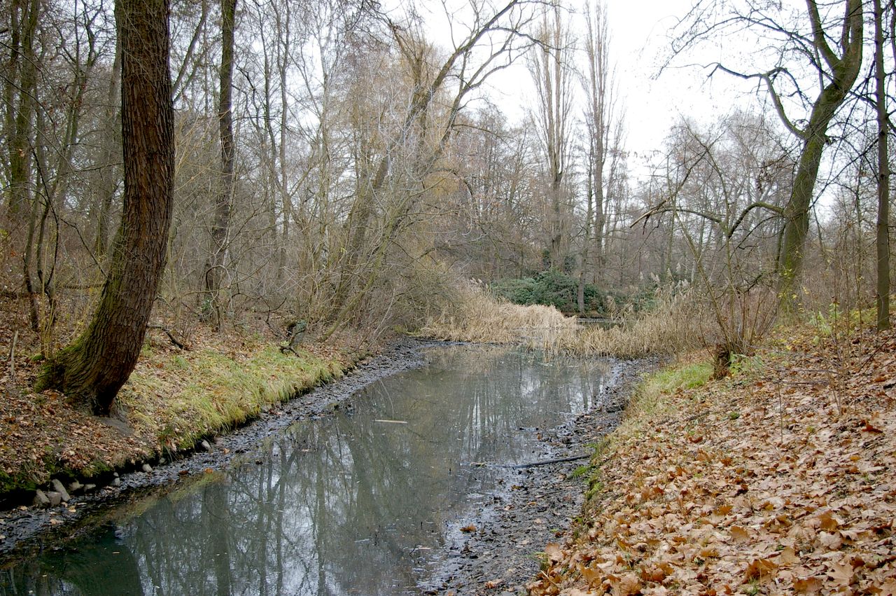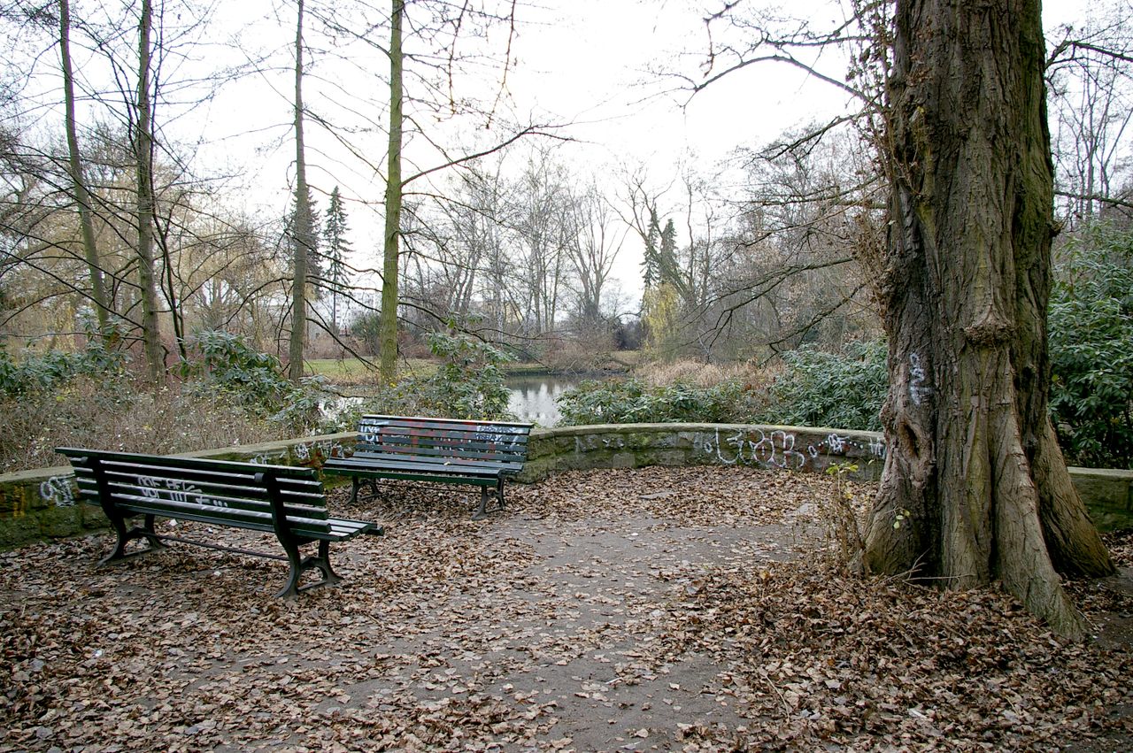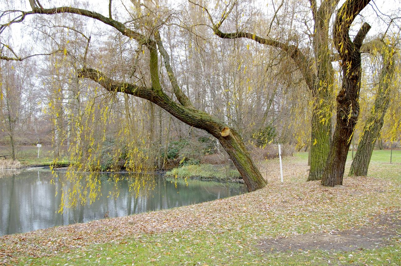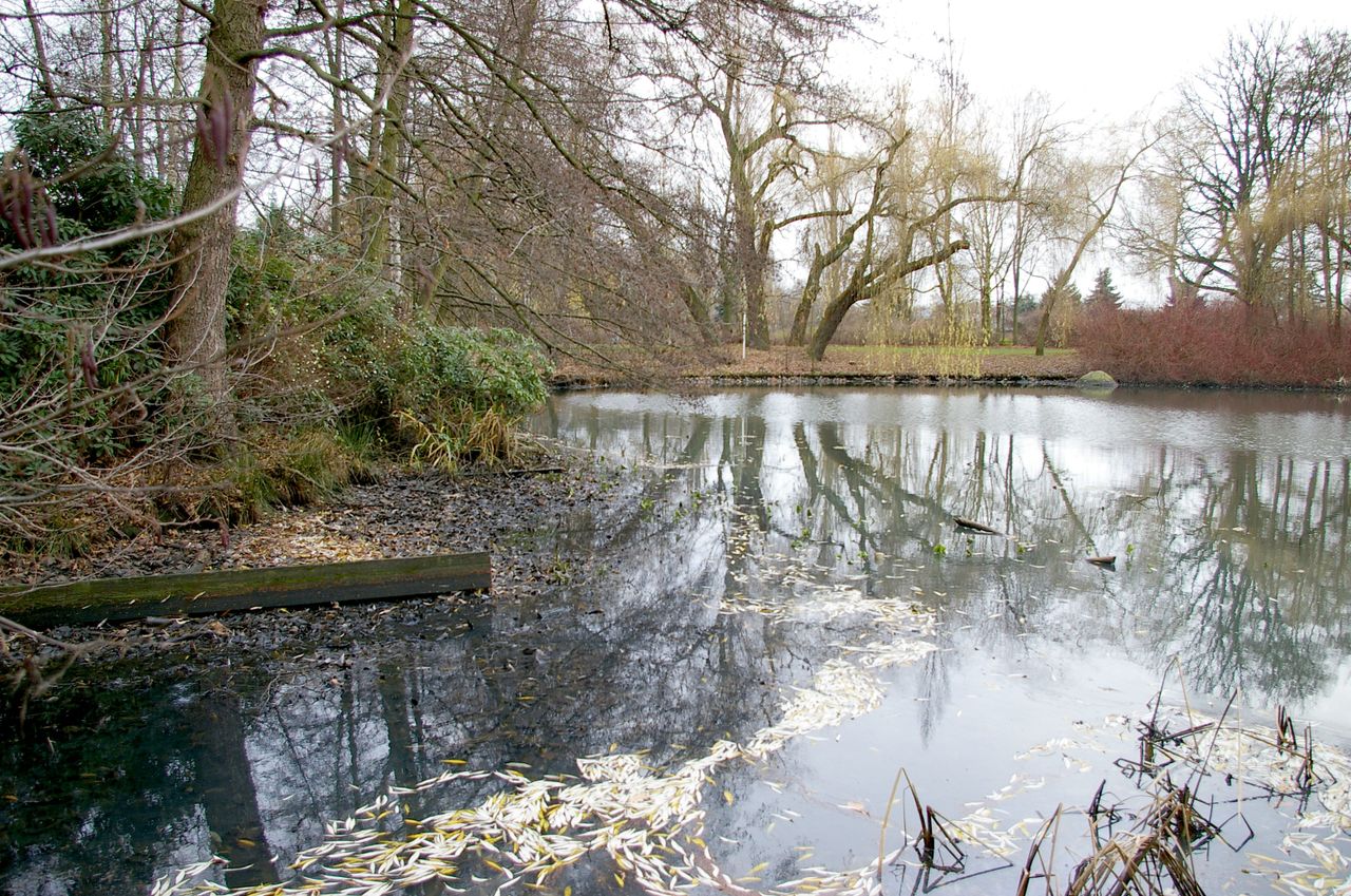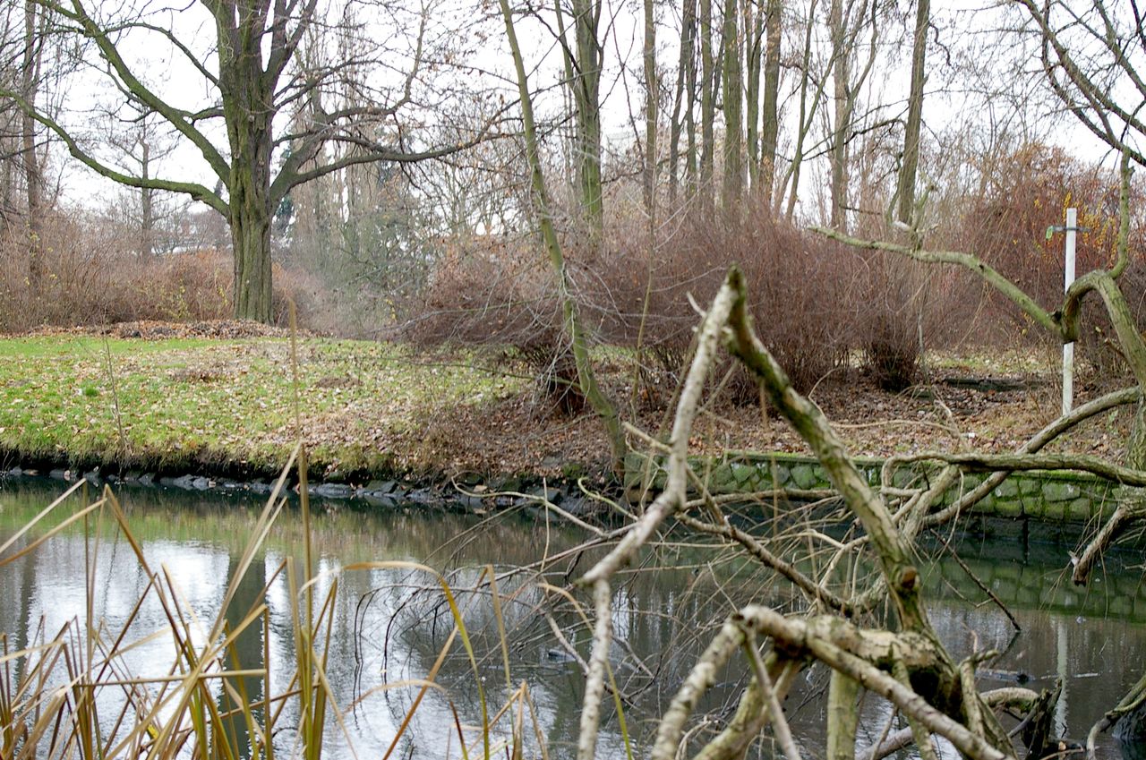 Parkanlage mit angelegtem Schwanenteich in der Nähe der S-Bahnstation Alt Reinickendorf.