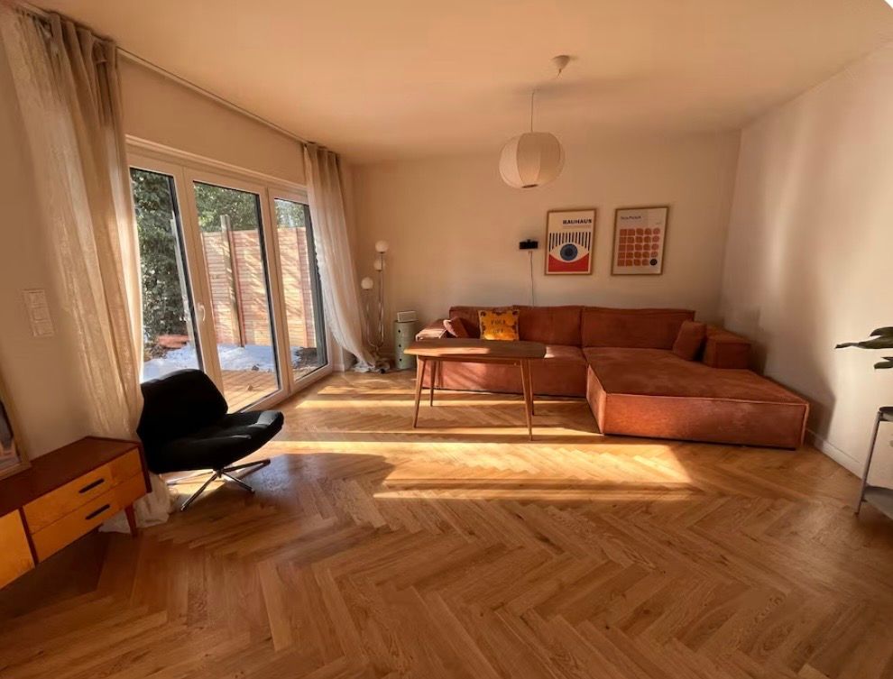 Das sehr schöne schwarze Doppelhaus liegt in mmitten von Hohen Bäumen und doch in Berlin. Die Zuwegung und der Parkplatz sind mit historischen Pflastersteinen gepflastert. Auf dem Parkplatz können zwei Autos parken direkt auf dem Grundstück. Das Haus ist mit Fischgräteparkett und einem sehr geschmackvollen Stil eingerichtet. Die beiden Badezimmer bestechen durch die einzigartigen Fliesen und die Möblierung. Die Treppe ist speziell angefertigt und hat eine wunderschöne Farbe. Die Räume sind großzügig und auch schnell verfügbar so dass Film- und Fotoarbeiten nichts im Wege steht. Im Wohnzimmerbereich sind bodentiefe Fenster, ebenso in den oberen Zimmern. Alle Räume sind voll eingerichtet in einem individuellen Stil, der sich durch das ganze Haus zieht. Die Deckenhöhe und die relativ freie Verfügbarkeit ermöglichen Ihnen ein reibungslos Arbeiten.