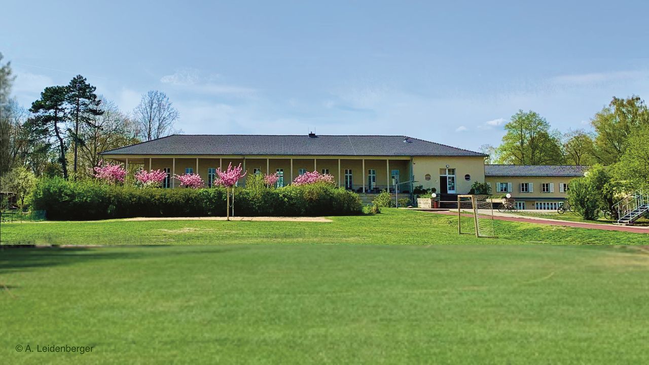 Das Hauptgebäude steht unter Denkmalschutz. Die Mensa enthält noch die originale Vertäfelung. Es befinden sich weitere Gebäude der Schule, des Internats und der Kita sowie zwei an MitarbeiterInnen vermietete Häuser auf dem Gelände. Das Gelände umfasst auch einen natürlichen (Ur)Wald und liegt an einem Schutzgebiet für Vögel.