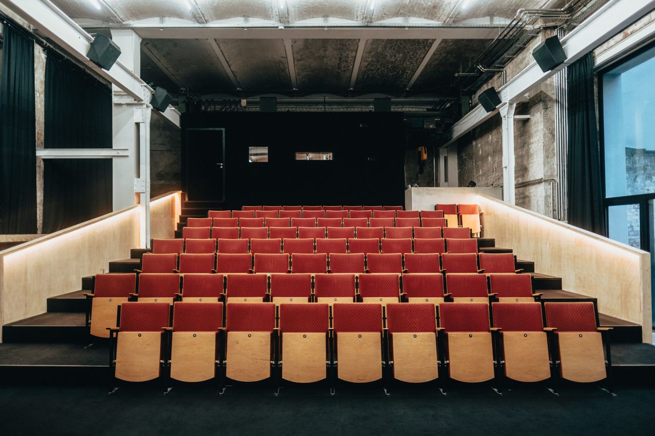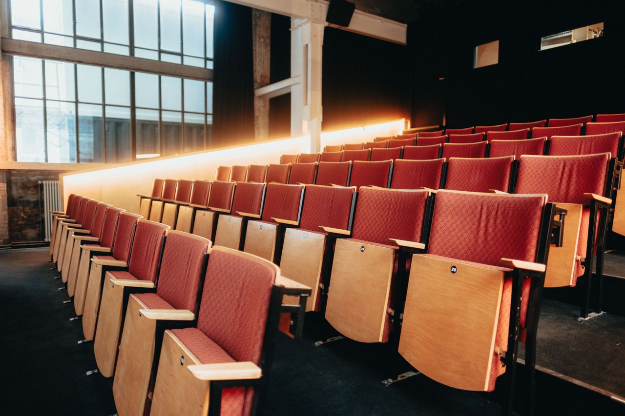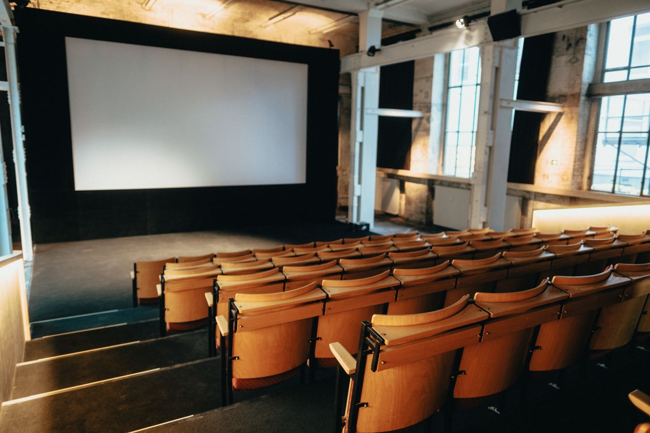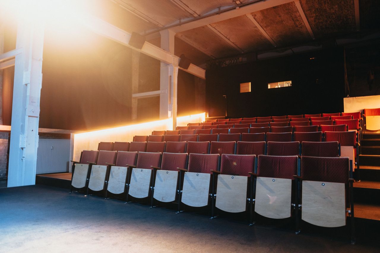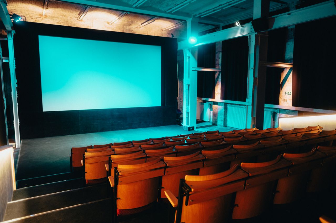 Kinosaal mit 78 Plätzen, Analogtechnik 35mm, 16mm, Lichtanlage, Bar Foyer, Tresen, Partybeleuchtung möglich.