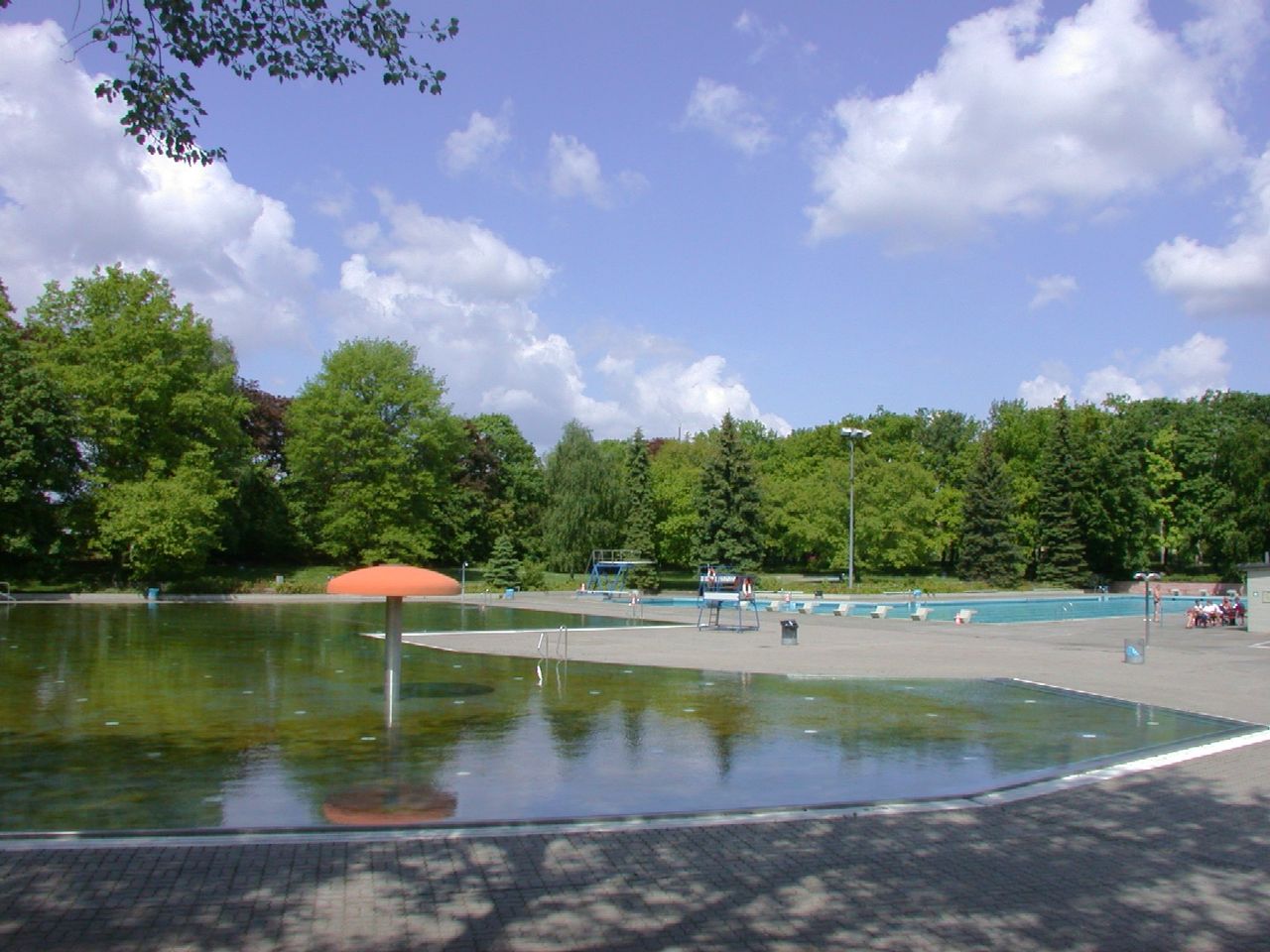 Liegewiese, 20m x 50m Schwimmbecken, Sprunganlage mit 1 m und 3 m Sprungbrett, großes Nichtschwimmerbeckenmit Wasserspielen und Kinderrutsche, Wasserspiele, Tischtennisplatten, Buddelkasten, Kinderspielplatz, Volleyballnetz, Fußballtore