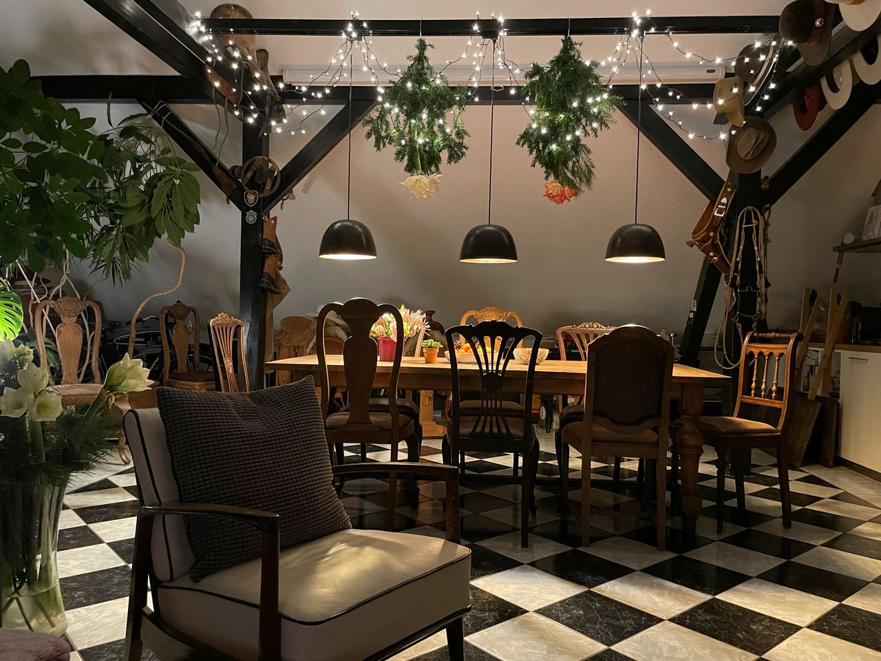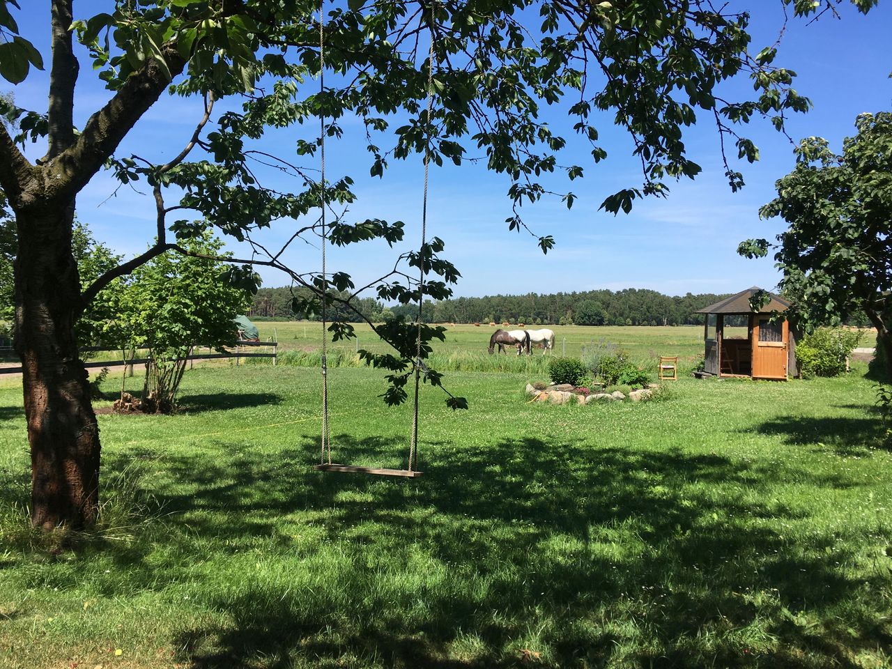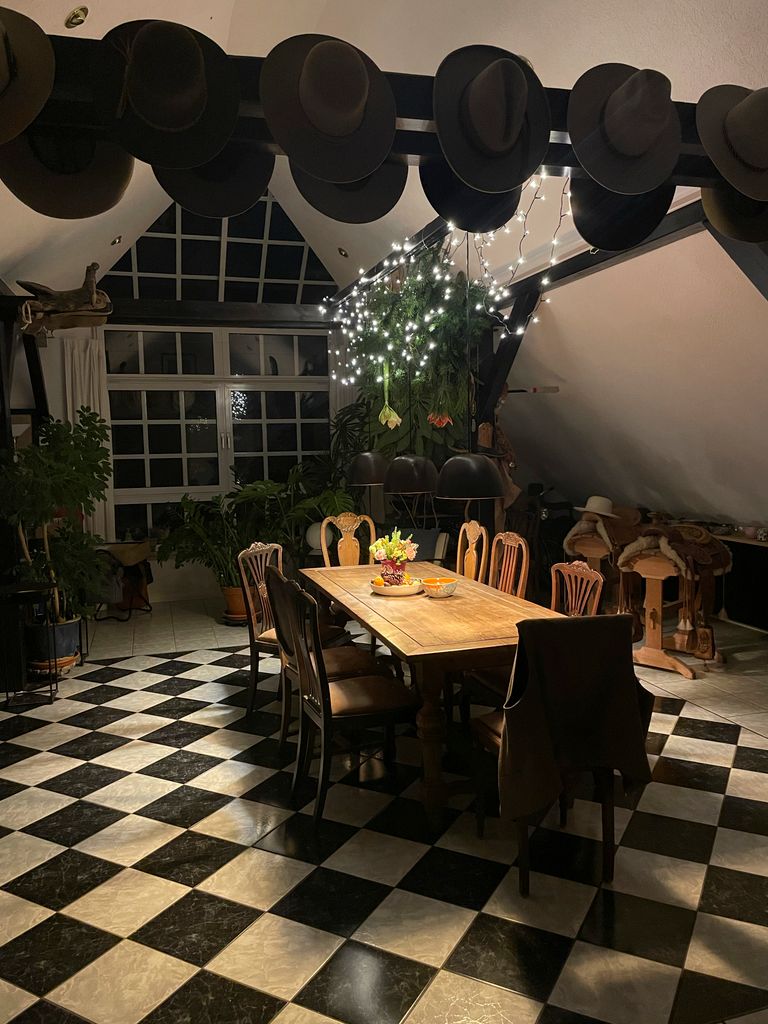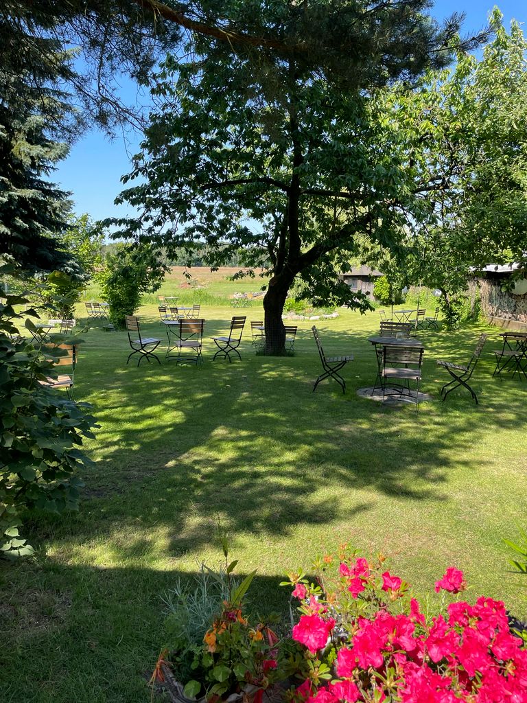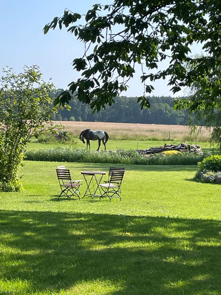 Die vorhandenen Gebäude umfassen unter anderem eine traditionelle Lederwerkstatt und Sattlerei, mehrere Garagen sowie weitere Werkstatt und Nebengebäude. Dadurch entstehen unterschiedliche nutzbare Settings und zugleich praktische Voraussetzungen für Aufbau, Lagerung und Produktion vor Ort. Ergänzt wird das Gelände durch weitere Elemente wie Sauna, Brunnen, Holzlager und einen Pavillon direkt an einer Wiese, der zusätzliche Möglichkeiten für Szenen, Aufenthalte oder kleinere Set Situationen bietet.