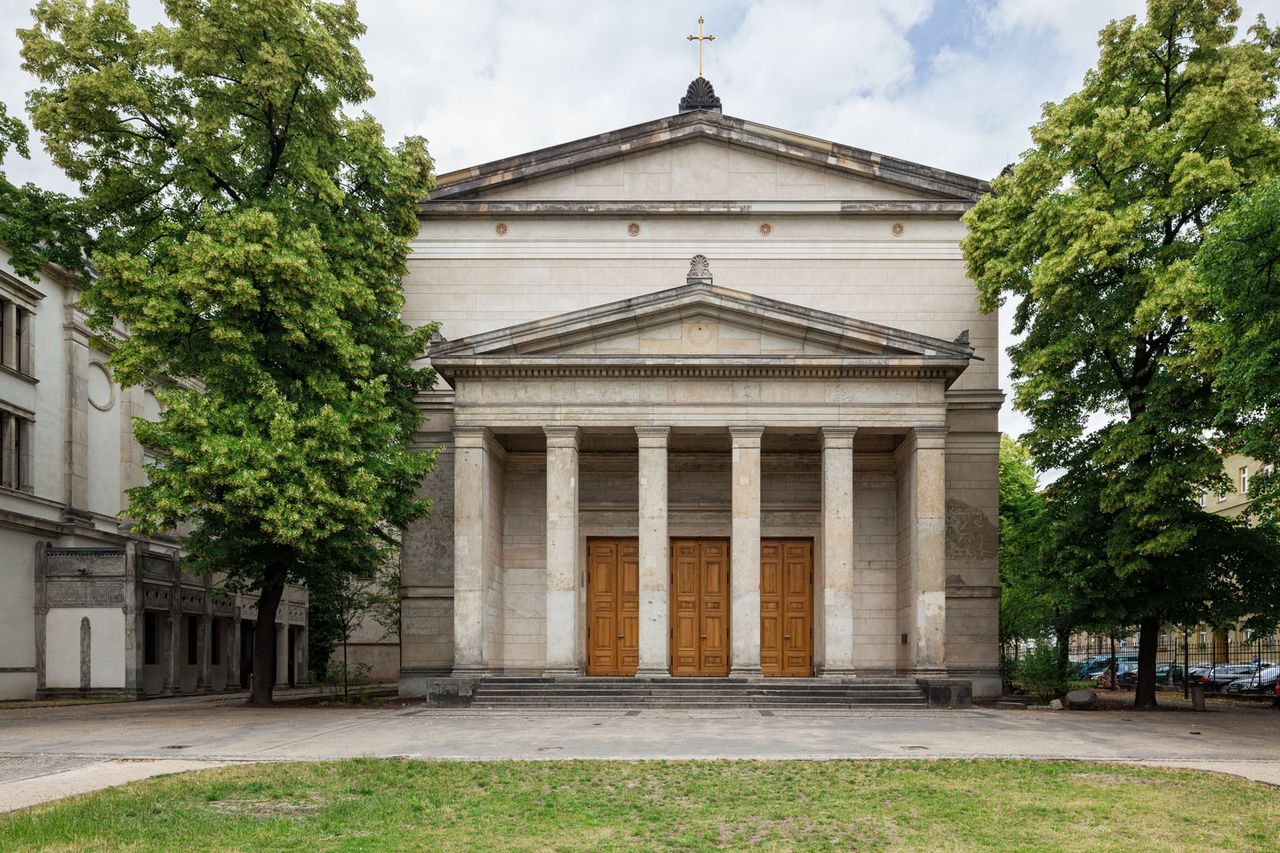 1835 erhielt die Rosenthaler Vorstadt „zur moralischen Erhebung der Verhältnisse“ ein eigenes Gotteshaus, von Karl Friedrich Schinkel im Auftrag König Friedrich Wilhelm III. (1770-1840) im „antikischen Stil“ errichtet. Die Kirche, 1935 zur Hundertjahrfeier renoviert, brannte 1945 vollständig aus.
