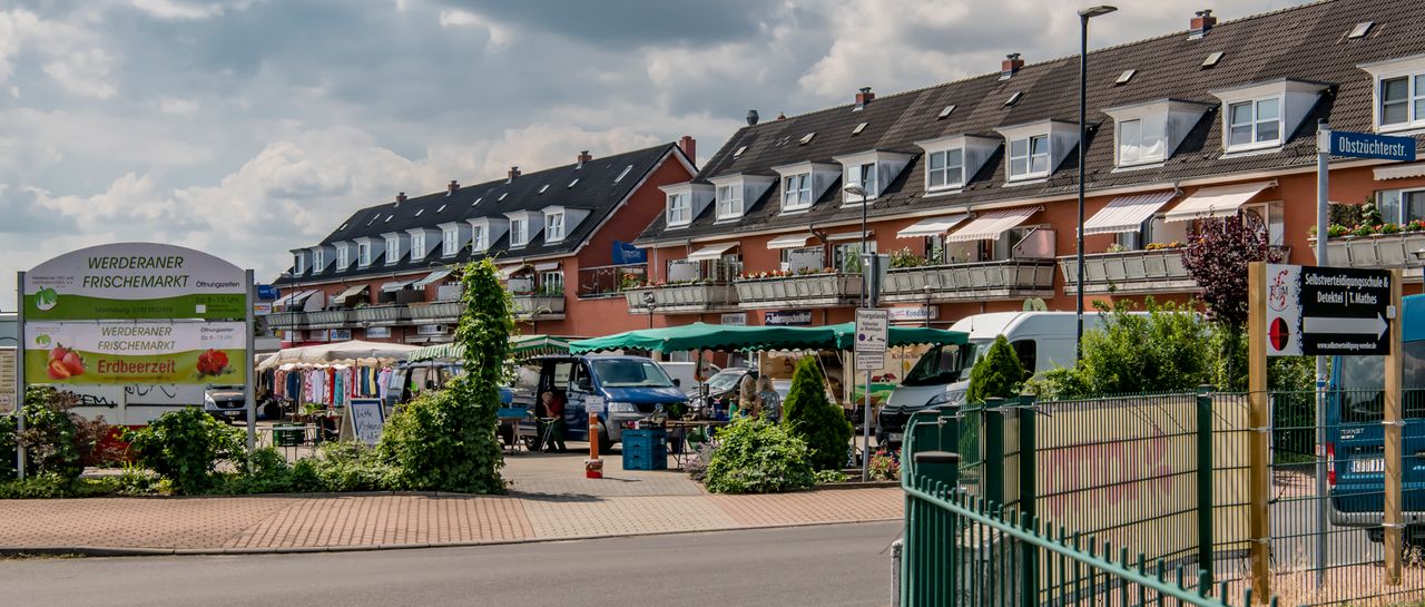 Die erste urkundliche Erwähnung Werders als „oppidum“, Städtlein, findet sich in einer Verkaufsurkunde vom 07. Juli 1317. Ritter Sloteke, Truchsess des Markgrafen Waldemar, verkaufte Werder auf Geheiß seines Herrn für 244,–Mark Brandenburgischen Silbers an das Kloster Lehnin. Lange Zeit war neben der Fischerei der von ihnen geförderte Weinbau eine der wichtigsten Erwerbsquellen. In seiner Blütezeit gab es 240 Weinberge in und um Werder. Als im 18. Jahrhundert der Weinbau aus verschiedenen Gründen zurückging, nutzten die Werderschen die vorhandenen günstigen Bedingungen für den Obstanbau. In Potsdam und vor allem in Berlin boten sich gute Absatzmöglichgkeiten, und Werder wurde als „Obststadt“ bekannt.