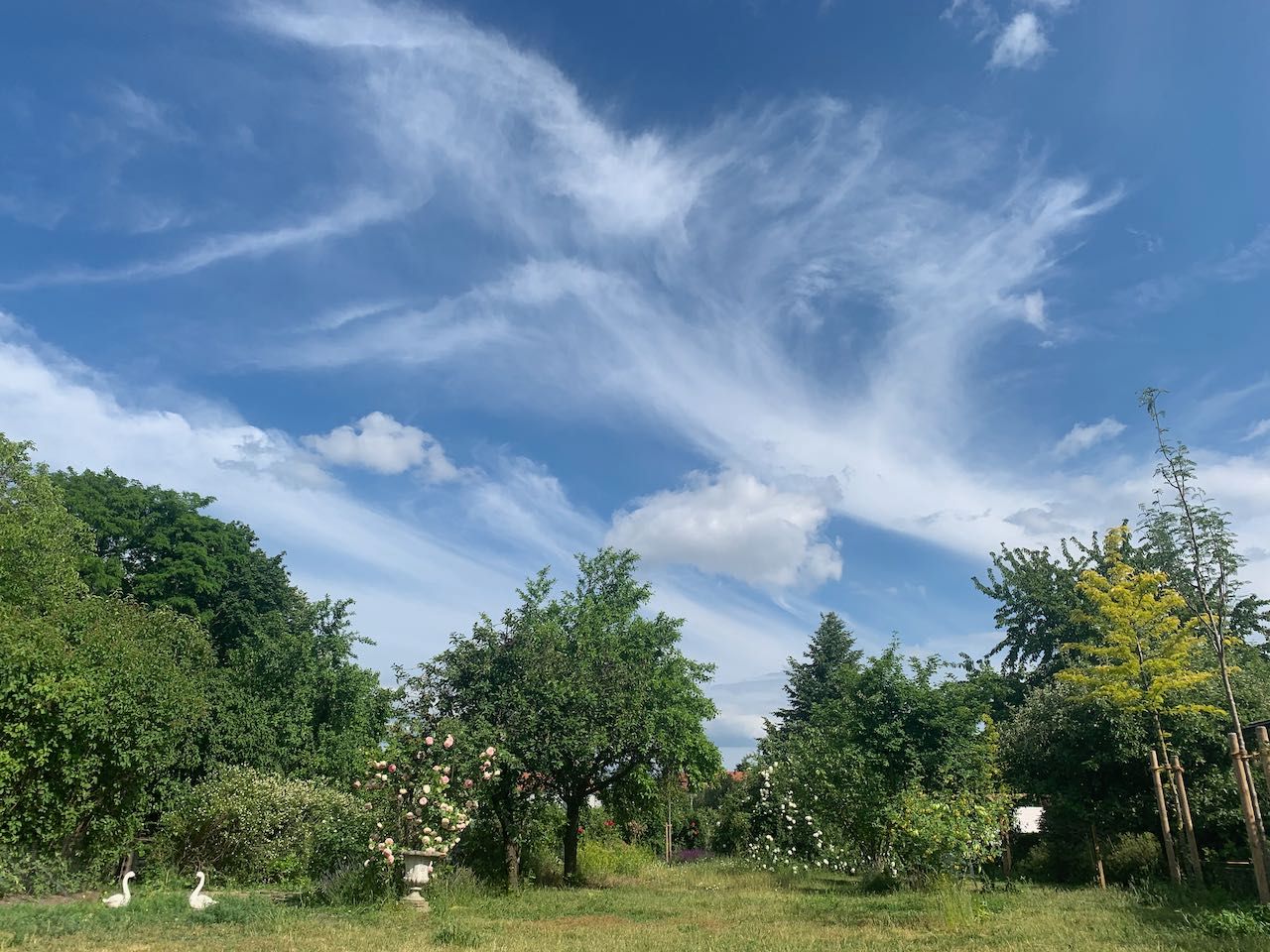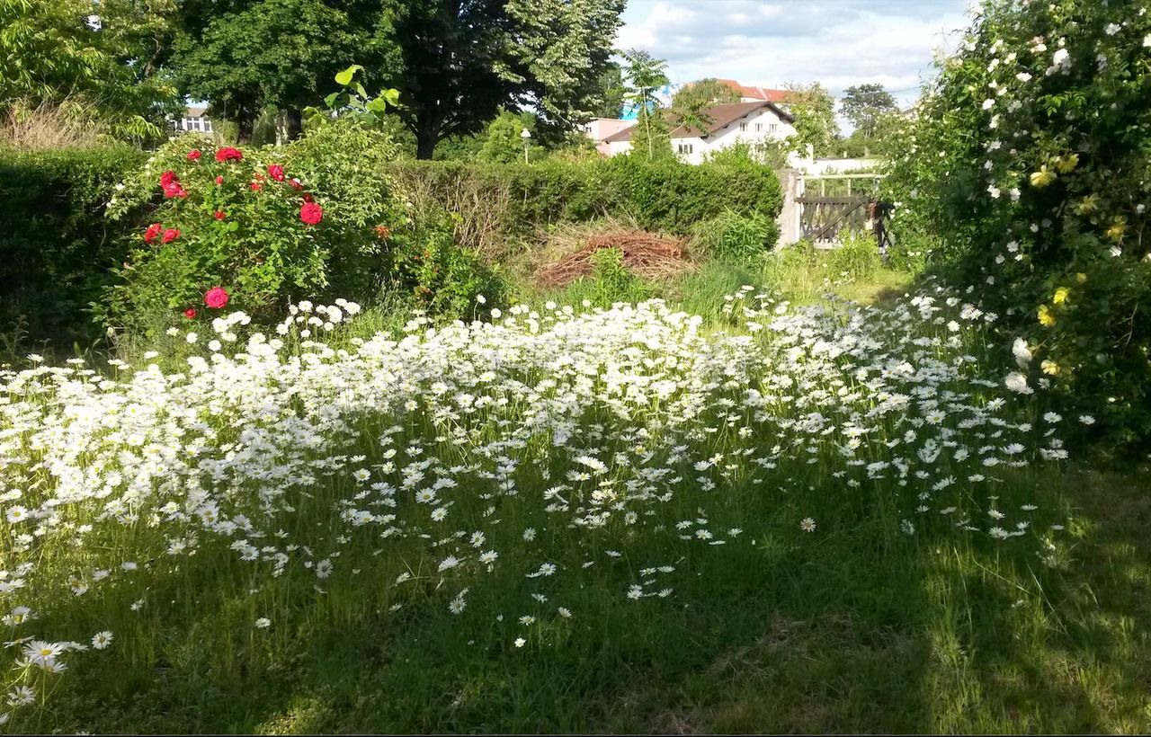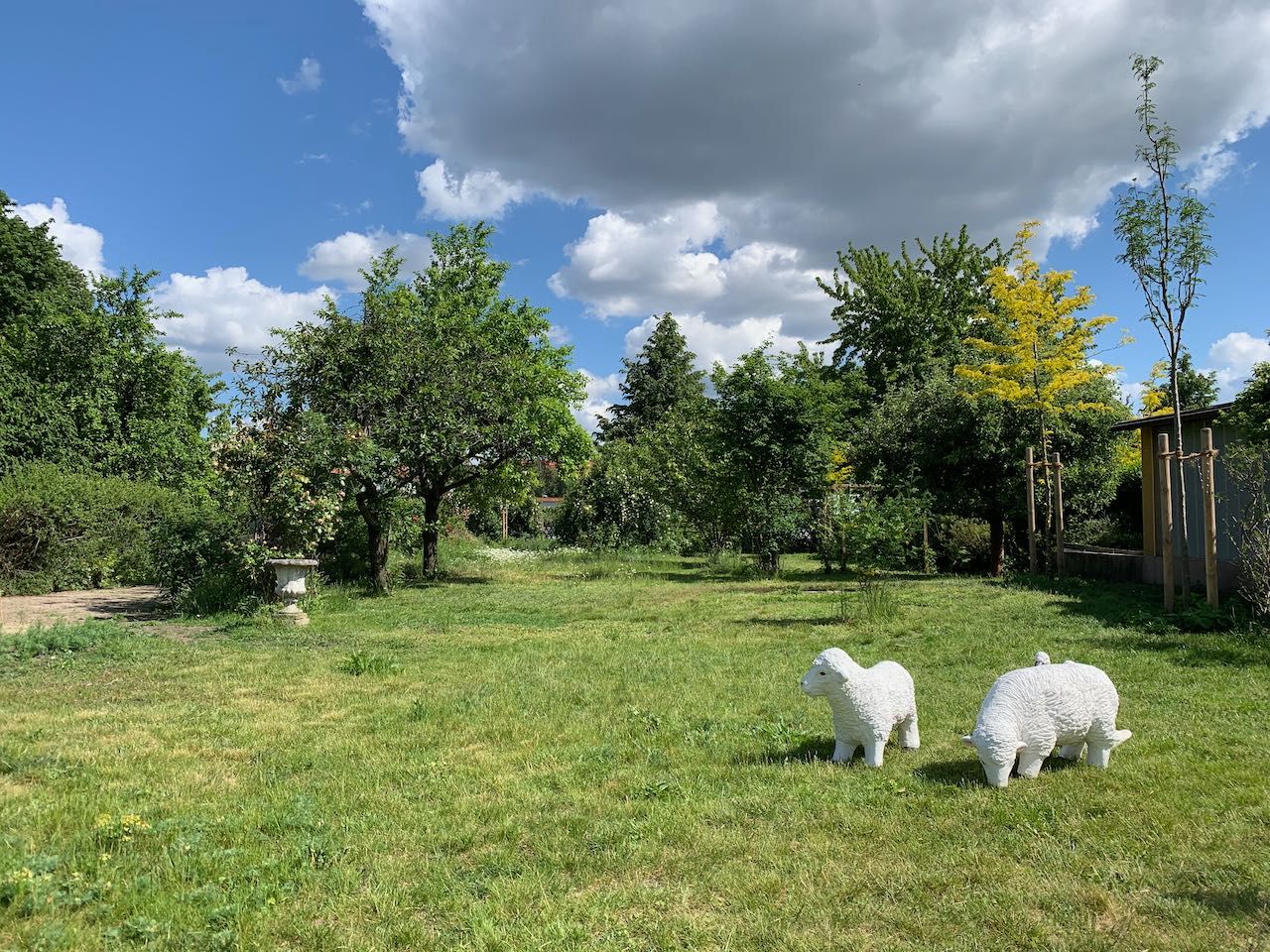 Grosser Garten mit Landurlaub-Atmosphäre, naturnah mit Obstbäumen, Wildwiese, Sträuchern, Teich und Gartenhaus. Ruhig aber zentral gelegen, mit guten Parkmöglichkeiten. Eckgrundstück an der Uferpromenade des Schifffahrtskanals mit (noch) unverbautem Blick in alle Himmelsrichtungen, weiterführend angrenzend an ein Ensemble von Kreativstudios.