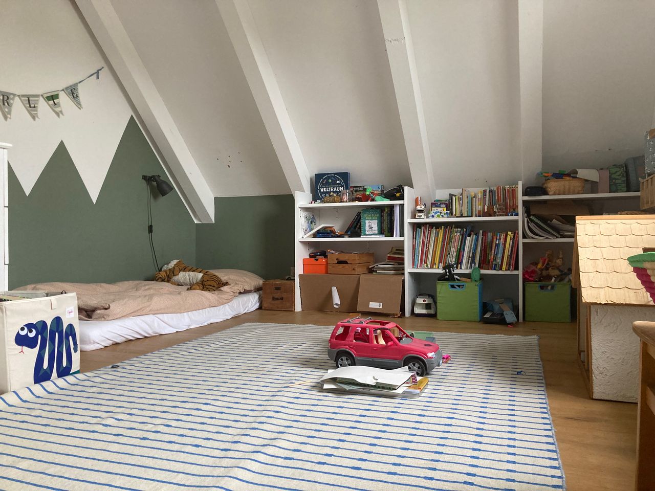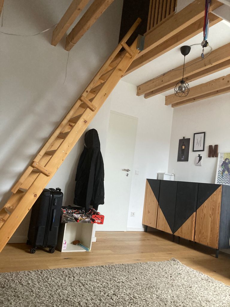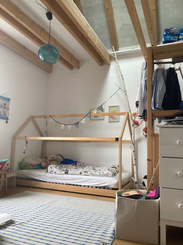 OG: 2 Bäder, 1 Elternschlafzimmer mit 5 Meter hohen Decken, zwei Kinder/Jugendzimmer mit Schlafemporen.