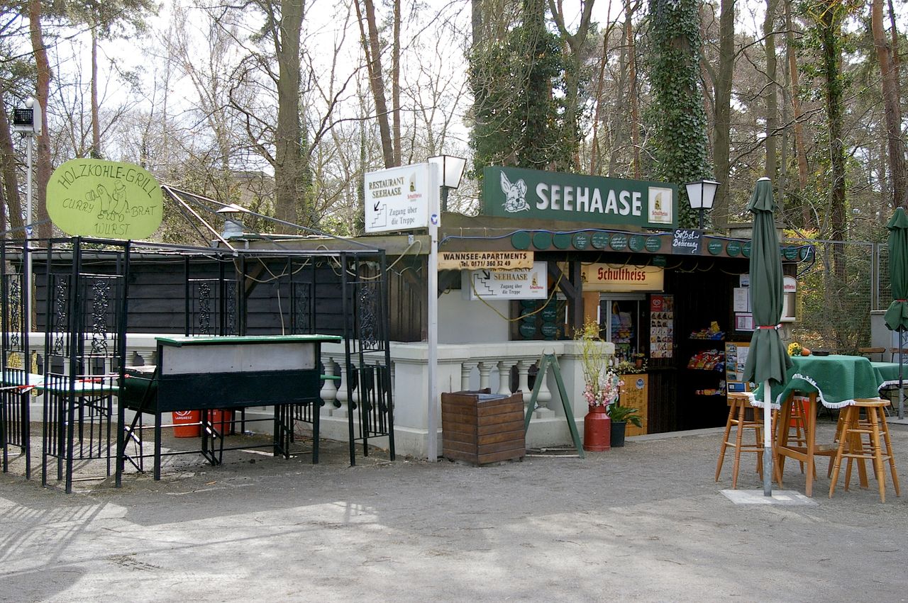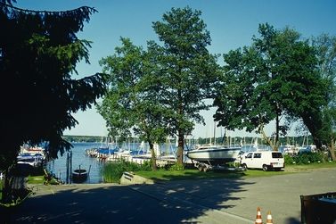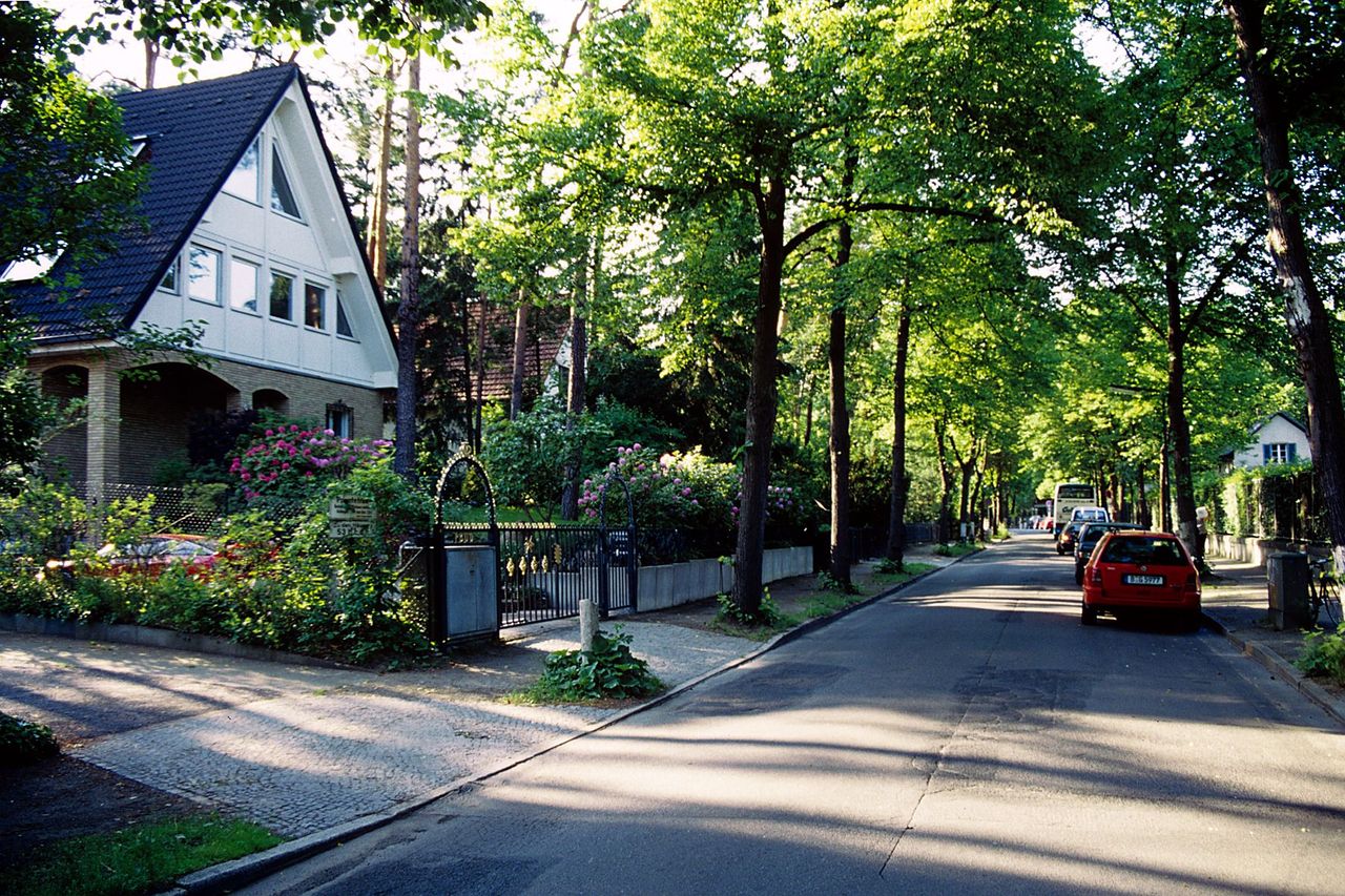 Lange, schmale Strasse entlang des berühmten Berliner Wannsees, grosse Anzahl von Villen um 1800-1900, stellenweise durchbrochen von “modernen” ein-zweigeschossigen Bauten, zahlreiche Jacht- und Segelhäfen - Anlegestellen der traditionellen Berliner Segelclubs, Gedenkstätte “Haus der Wannseekonferenz”