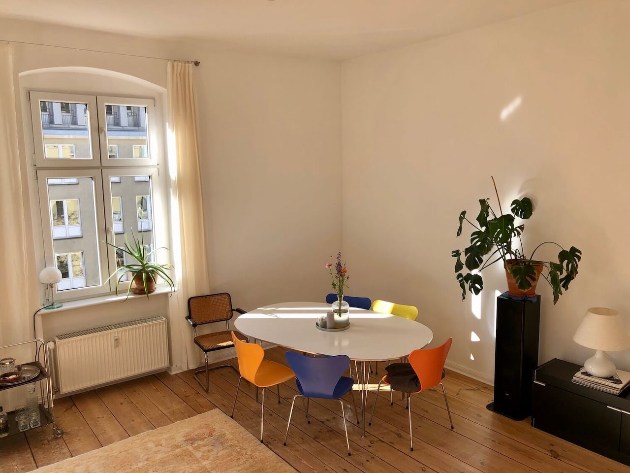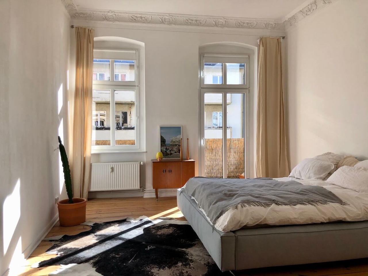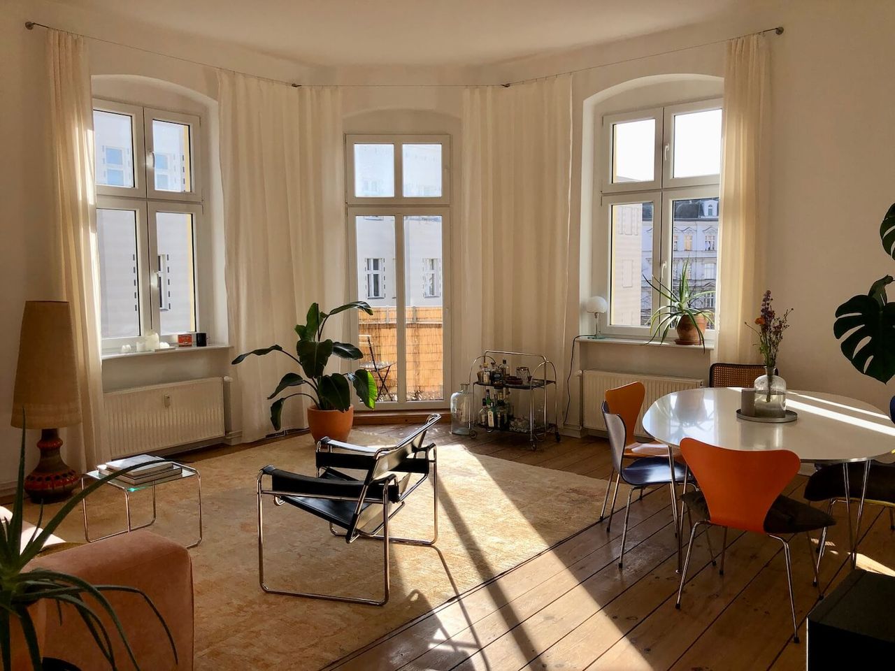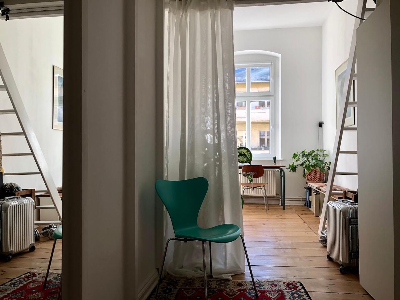 This 100 sqm altbau couple-apartment in Berlin's West comes with three rooms and two balconies and provides sunlight and brightness all day long– which is particularly apparent in the spacious living and dining area with windows facing two streets. The mix of modern furniture, timeless classics and vintage finds makes the setting suitable for various types of photo and film shoots, especially those that want to show an authentic, modern lifestyle.