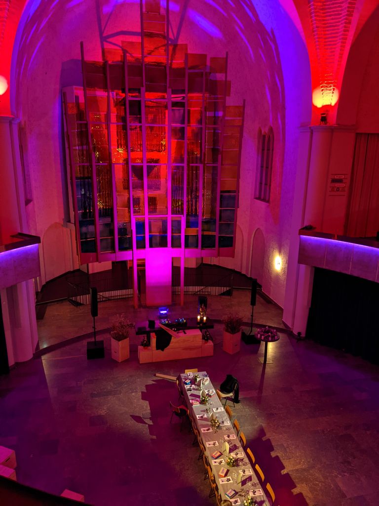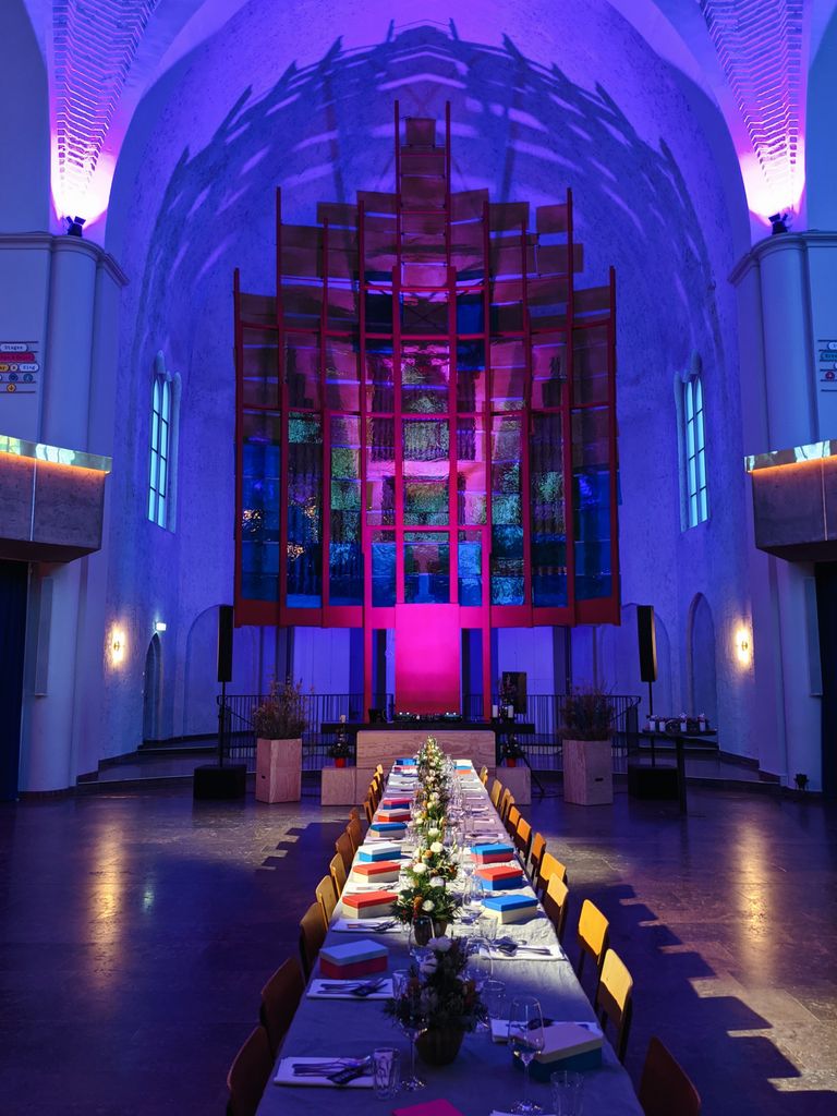 Großzügigkeit des Raumes kommt auch am Abend durch eine ausgeklügelte Beleuchtung eine gemütliche Stimmung an den Tischen auf. Das TERZ verfügt über eine große Terrasse direkt auf dem Herrfurthplatz, die durch die großen Bankelemente aber dennoch einen eigenen Bereich mit einer gewissen Privatsphäre bietet.