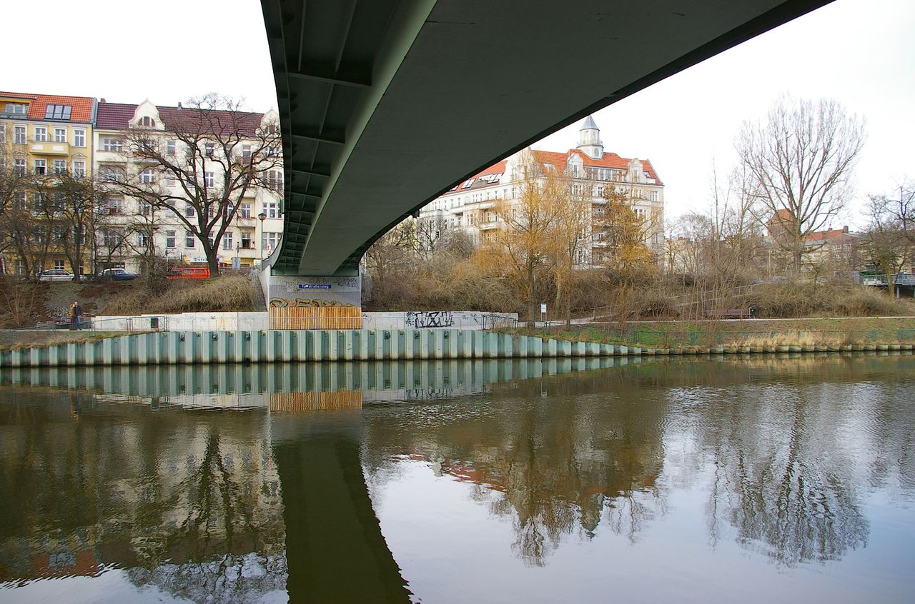 Der Torfstraßensteg verbindet den südlichen Teil der Torfstraße über den Berlin-Spandauer Schiffahrtskanal mit dem Friedrich-Krause-Ufer. 1859 existierte bereits eine hölzerne Klappenbrücke. Die in den Jahren 1895 bis 1896 im Zuge der Torfstraße erbaute steinerne Torfstraßenbrücke erhielt ihren Namen nach den Torfwiesen, die sich einst beiderseits der hier 1832 angelegten Straße befanden. 1944/45 wurde die Brücke beschädigt und dann abgebrochen. 1968 wurde eine Spannbetonbrücke gebaut, die wiederum 1980 abgebrochen wurde. Einige Meter westlich entstand 1979/80 der T. Auf ihm erstreckt sich von der einen zur anderen Seite ein stählerner Bogen, der in der Mitte des T. eine Höhe von mehreren Metern erreicht.