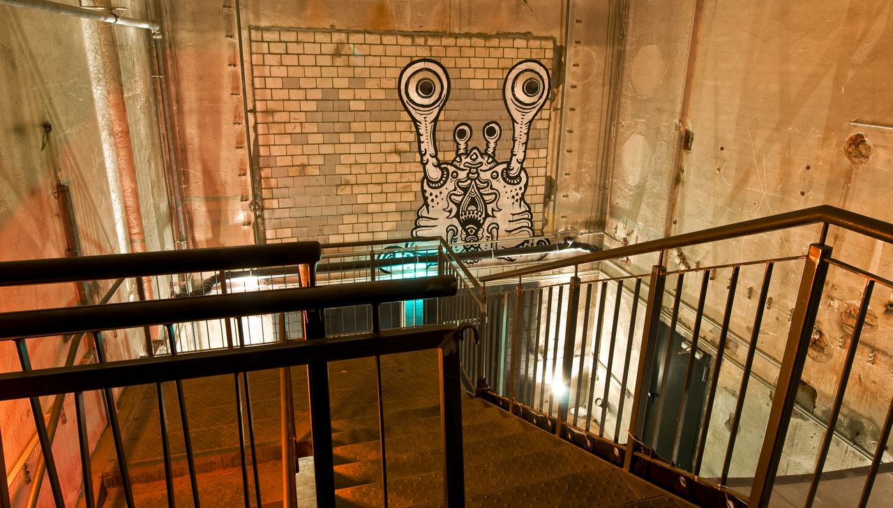 Der Floor befindet sich im Untergeschoss, zu dem man durch einen 30 Meter langen Tunnel gelangt. Massive Betonwände und eine niedrige Decke schirmen den Besucher von der Außenwelt ab. Der Raum eignet sich sowohl für Musikveranstaltungen , als auch für Foto-Shoootings und Filmdrehs.