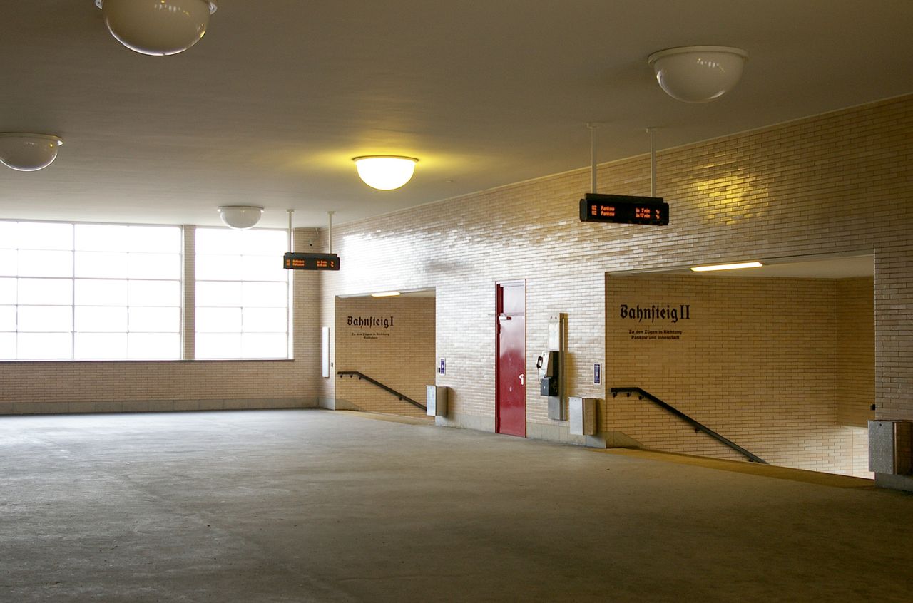 Station der U-Bahnlinie U2 am Olympiastadion - zur Olympiade 1936 mit großzügigen Einganghallen errichtet