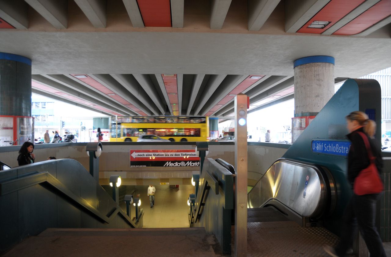 Der zwischen 1971 und 1973 erbaute und 1974 eröffnete U-Bahnhof Schloßstraße ist ein U- Bahnhof der Linie U9 der Berliner U-Bahn im Bezirk Steglitz-Zehlendorf, Ortsteil Steglitz. Er liegt unterhalb der Schloßstraße zwischen Schildhornstraße und Zimmermannstraße.
