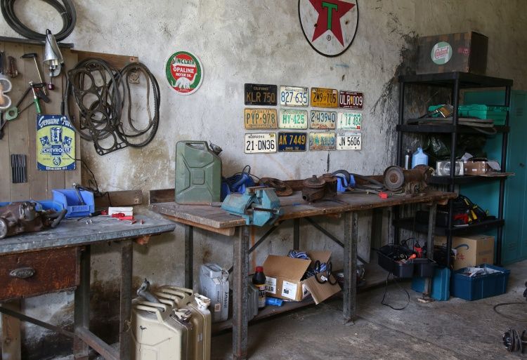 Foto-und Filmstudio im Stil einer alten Auto Werkstatt mit US Thematik. Derzeit stehen zwei US Pick-up trucks in der Garage. Beide nicht fahrtauglich, aber trotzdem insofern bewegbar als man sie aus der Garage ziehen und auch im Außenbereich einsetzen kann. Die Garage hat eine Größe von ca. 140 qm. Deckenhöhe ca. 4 Meter und steht auf einem Gutshof deren Freifläche man ebenfalls nutzen kann. Die Garage hat eine Südwest- Ausrichtung. Stromanschluß nur über 2000 kw Powerbank , die Solar betrieben wird. Einfache Sanitärbereiche auf dem Hof verfügbar. Die Location befindet sich in Schönwalde-Glien, westlich von Berlin nahe Falkensee.