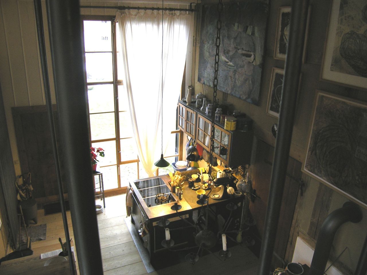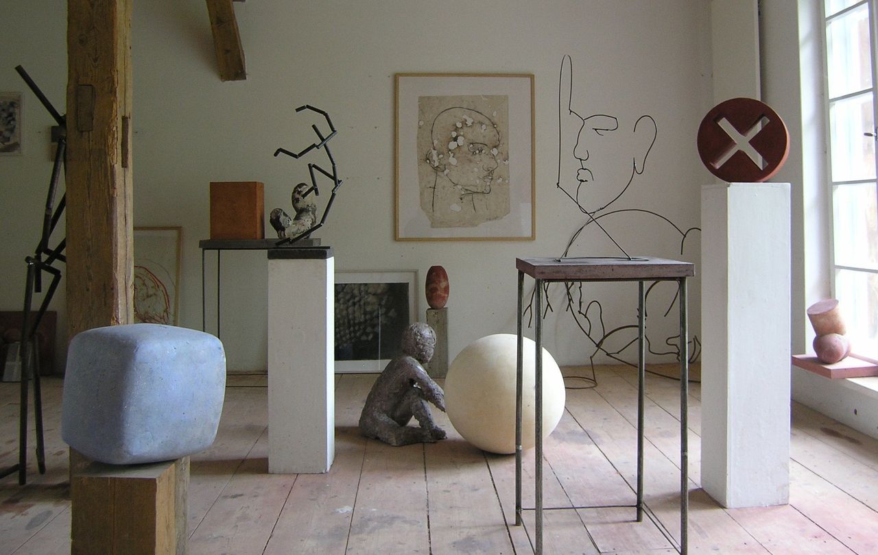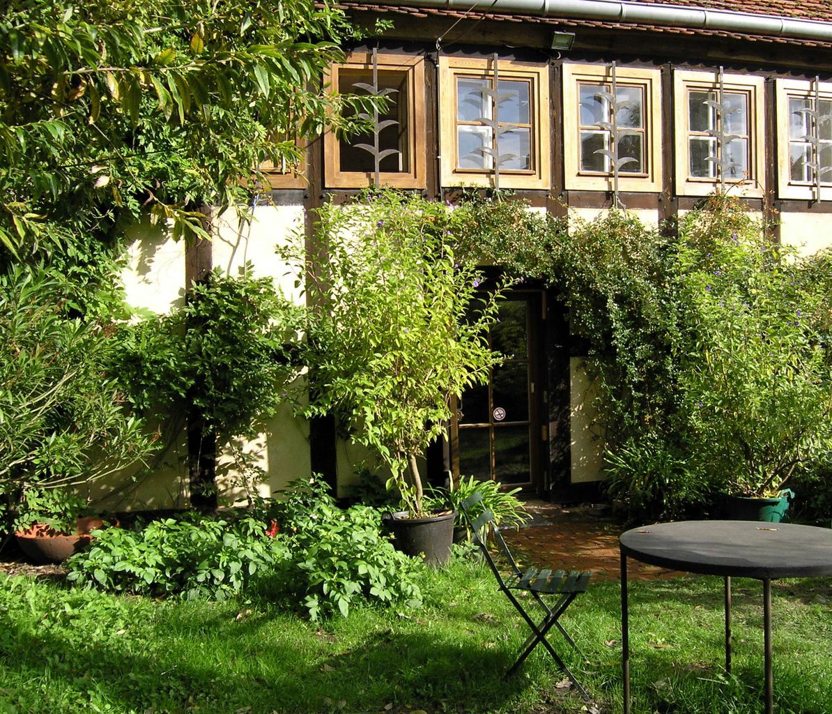 1 Ferienwohnung für 2 Personen und 2 große ( ca. jeweils 100 qm) Künstlerateliers mit großen Fenstern, Innenhof begrünt mit Bäumen,Sträuchern, Skulpturen,