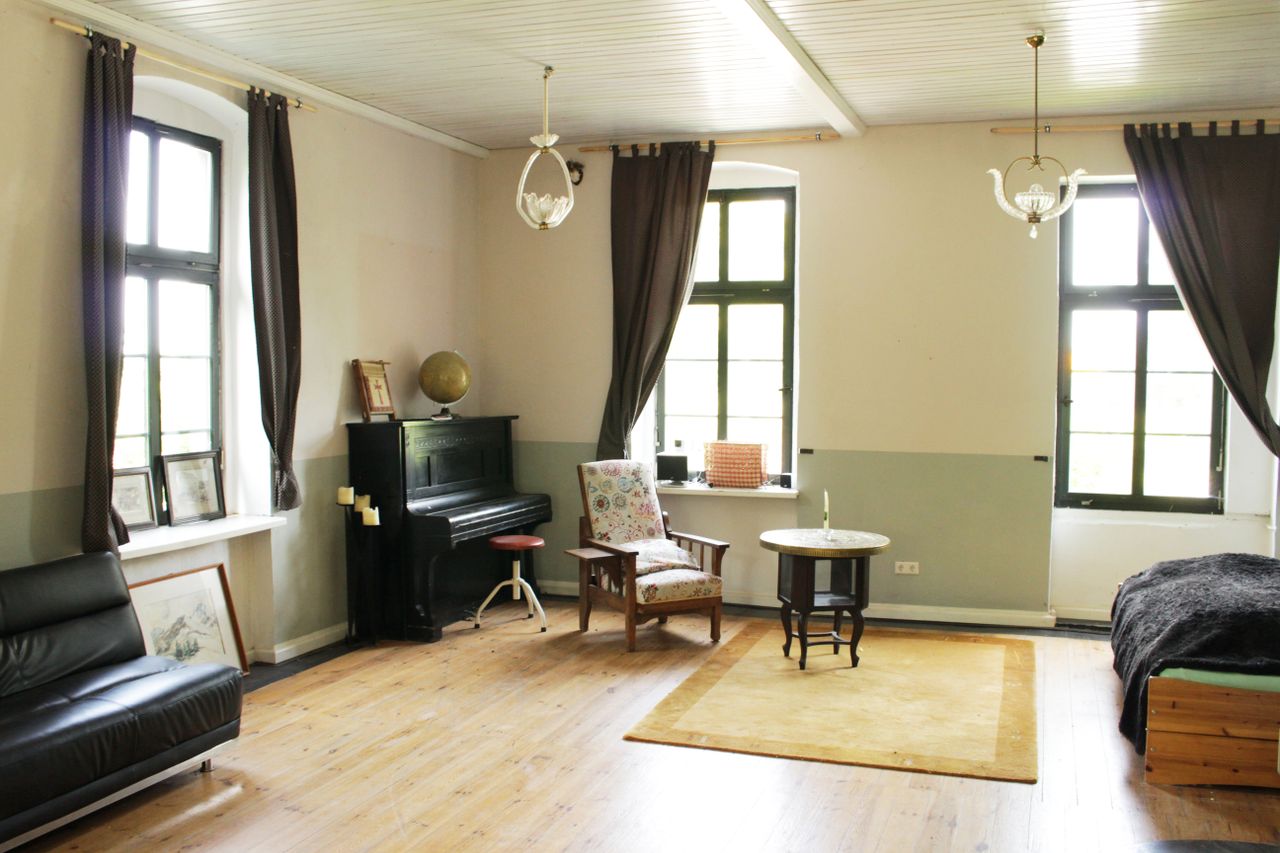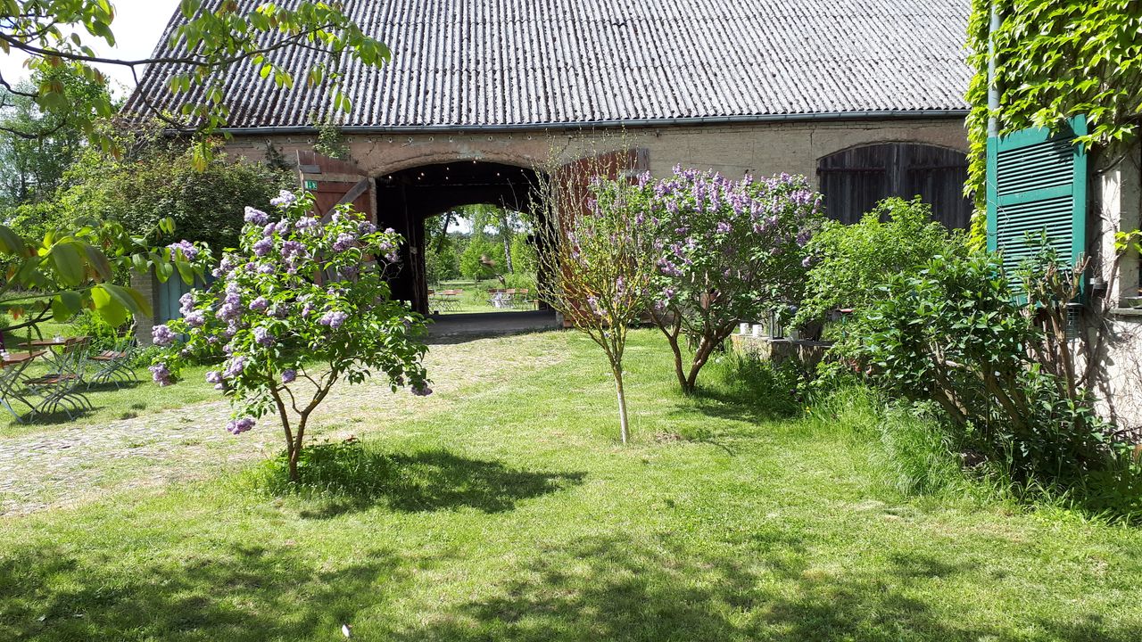Auf dem Hof befindet sich ein großer Garten, eine ca. 230 m2 große Scheune, die für Veranstaltungen genutzt wird. Desweiteren gibt es eine Profi-Küche, großzügige Damen- und Herrentoiletten inkl. einer Dusche, sowie ein weiteres ca 70m2 großes Zimmer, inkl. Bad (Dusche und WC) (flexibel nutzbar).