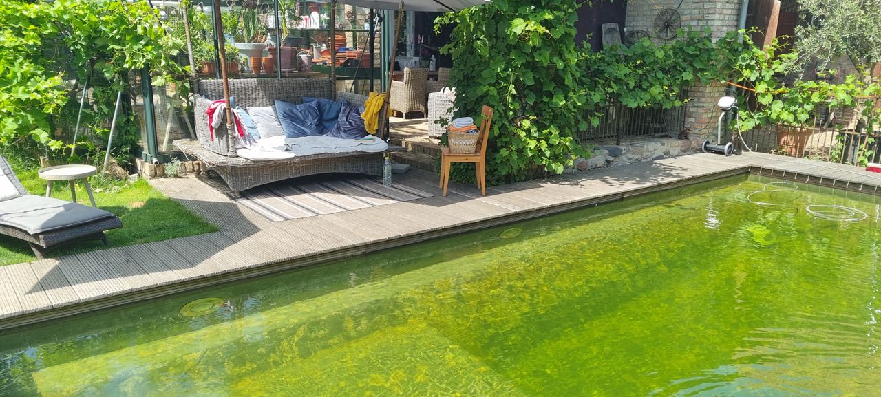 Wunderschöner Garten mit Naturpool, Sommerküche, Grillplatz und Gewächshaus.