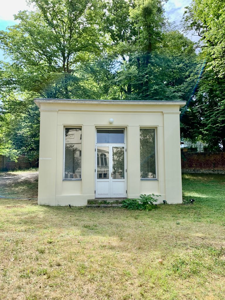 Es befindet sich zudem noch eine Remise gegenüber der Villa, die ebenfalls angemietet werden kann, entweder als Motiv oder für Produktionsräume mit eigenem Bad/WC/ Stromanschlüssen. Zu dem Ensemble gehört noch der "Afrikanische Pavillion" sowie ein Gerätehaus mit Eingangstor, das derweil als Werkstatt dient.