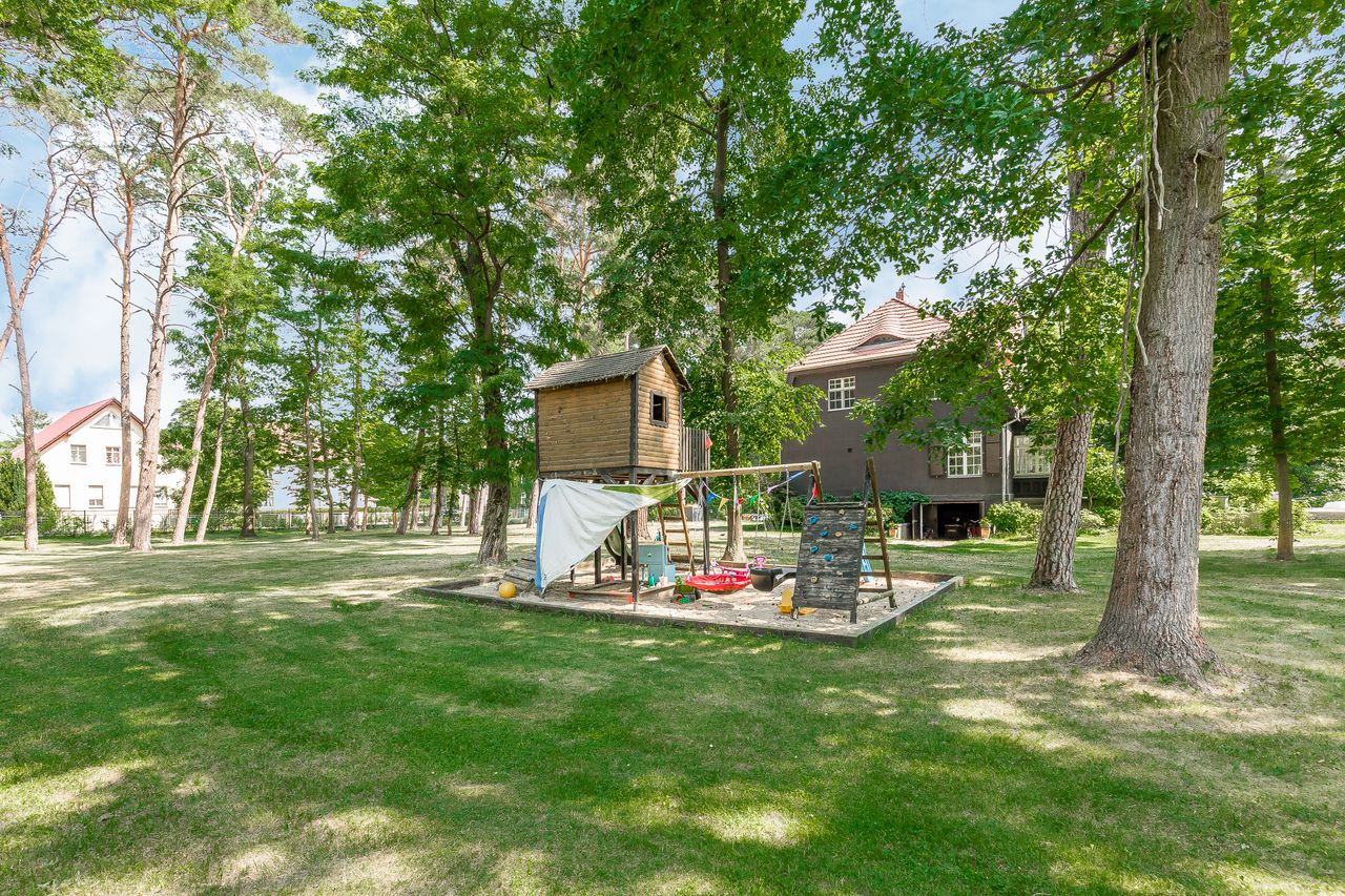 Die Villa liegt etwa 15 Minuten vom Flughafen BER und rund 45 Minuten von Berlin entfernt, sowohl mit dem Auto als auch mit der Bahn. In unmittelbarer Umgebung befinden sich Supermärkte, eine Tankstelle und mehrere Restaurants.