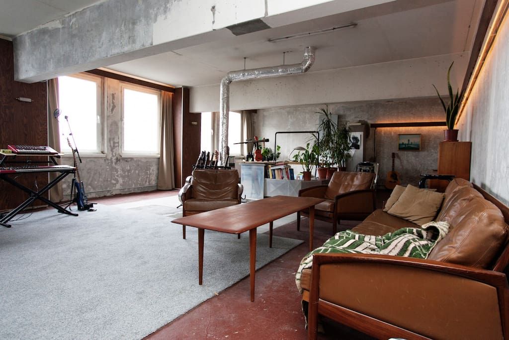 Wooden walls, guitars, synthesizers and a view over Berlin. This place has seen it all: the birth of songs, jam sessions, parties, inspiration, stars and groupies. This place is real and you can feel it.