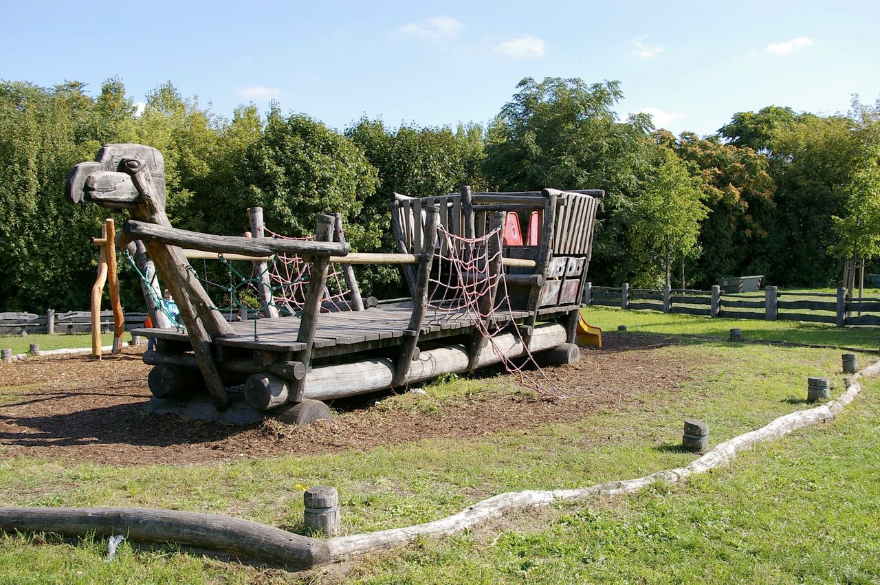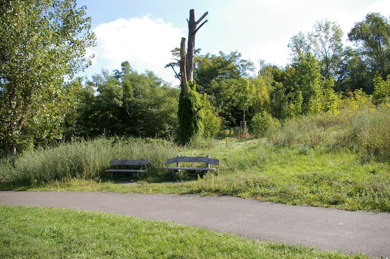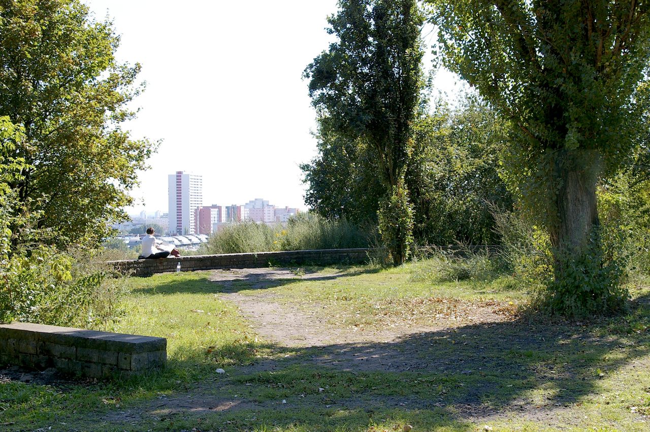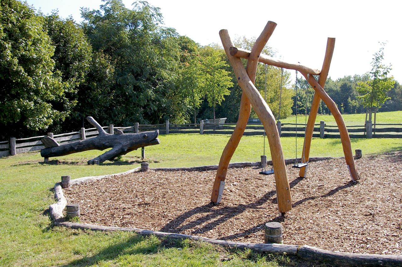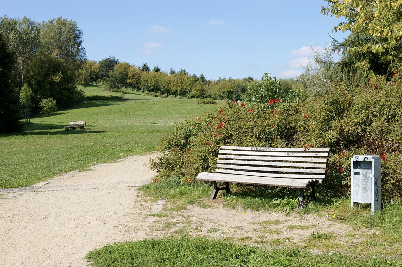 Großer hügeliger Park mit weitläufigen Grünflächen.