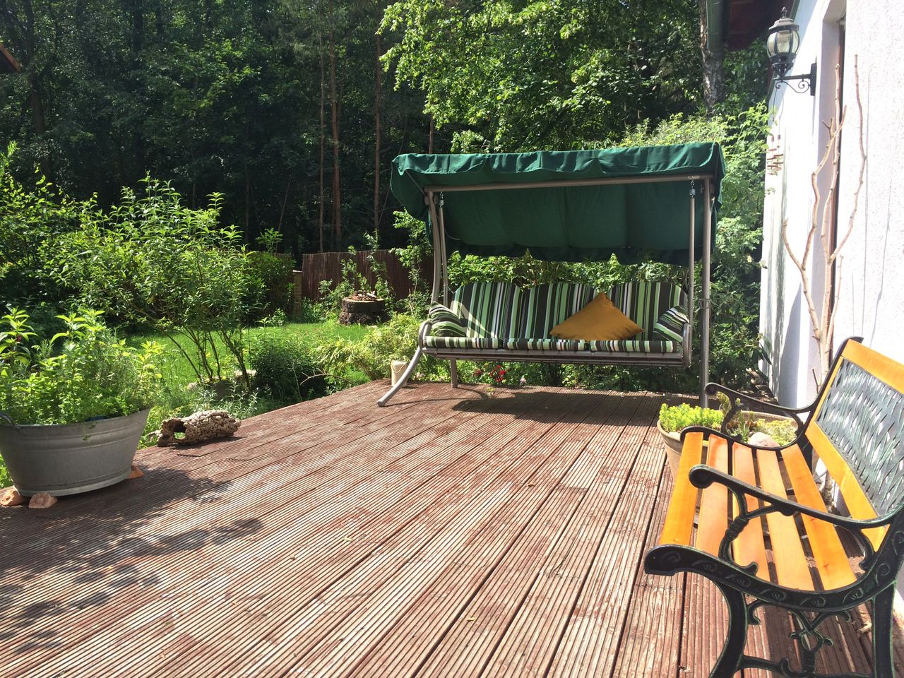 Das kleine Haus mit großem Garten liegt direkt am Waldrand mitten im Naturpark Märkische Schweiz, nur 50 km von Berlin-Mitte. Ein Teil des anliegenden Waldes gehört ebenfalls zum Grundstück und wird von einem Bach eingerahmt. Das Haus hat nur einen Nachbarn und ist zu den drei anderen Seiten freistehend. Das liebevoll eingerichtete Haus hat eine große Terrasse mit wunderschönem Blick in den Wald. Im Haus gibt es eine große Wohnküche, einen Kamin und drei kleine Schlafzimmer sowie zwei Bäder.