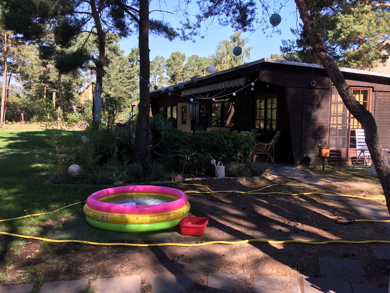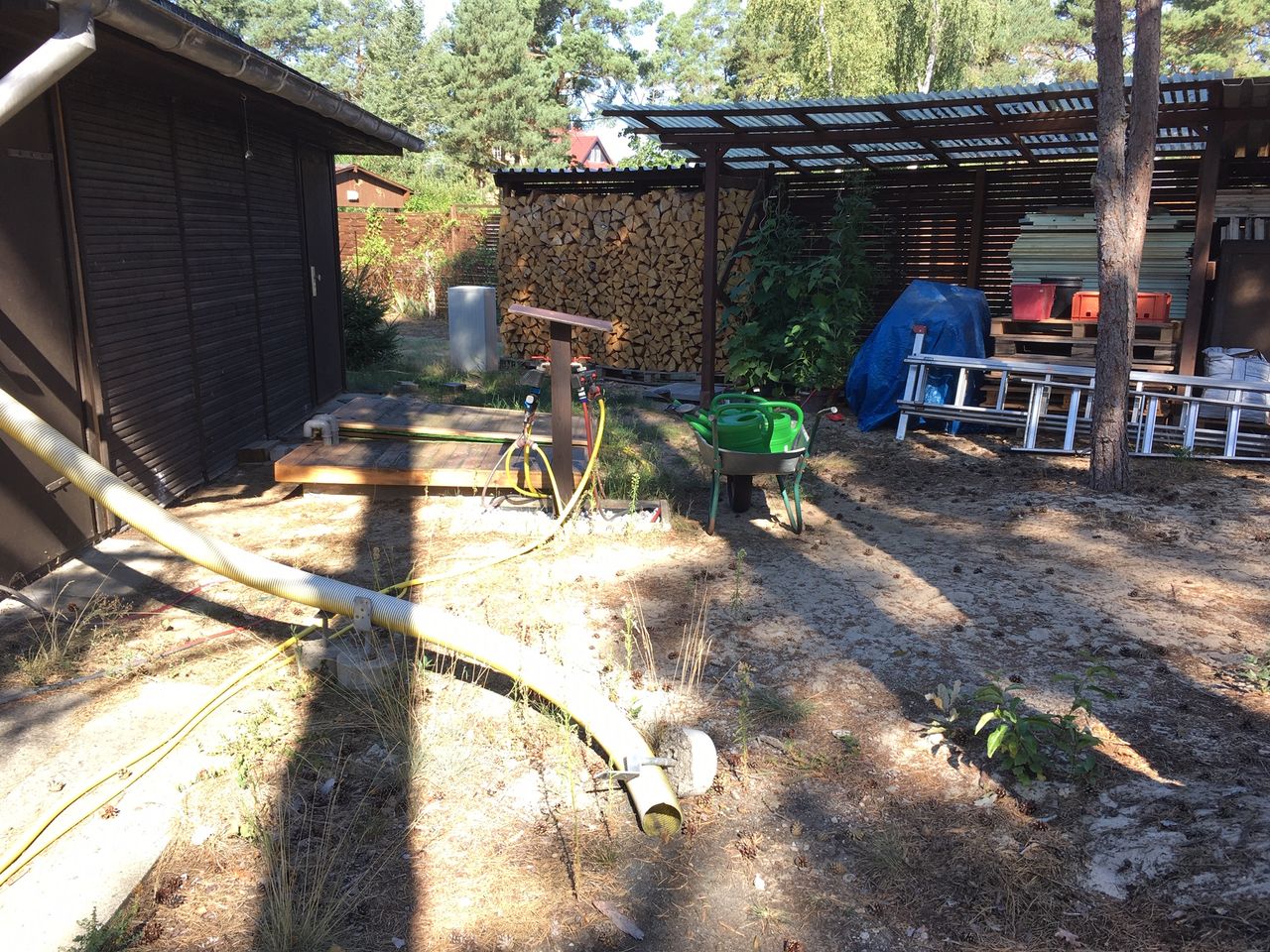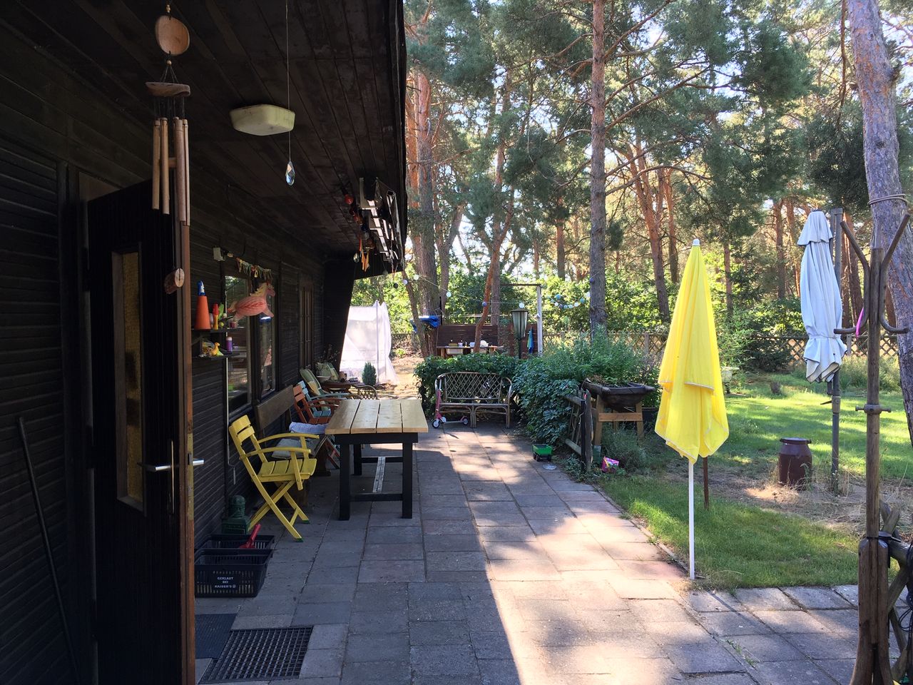 Es handelt sich um ein 3400qm Waldgrundstück mit einem Holzhaus 30 Minuten von Berlin. Das Haus, Baujahr 1978 hat ca. 70qm Wohnfläche und nebenan befindet sich eine kleine Werkstatt. Die Decke wurde entfernt und momentan liegt das Holz frei. Wände wurden rausgerissen, Fenster und Türen zum Teil schon erneuert. Starkstrom wurde neu gelegt und ist abgesichert! Das Ganze Haus ist noch nicht fertig verkabelt. Es gibt Wasser, eine wunderbare Außendusche und viel Wald. Der Mellensee mit Badestelle ist 400m entfernt und der Wald schließt direkt am Haus an.