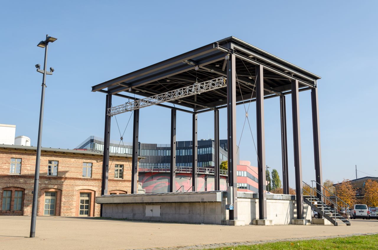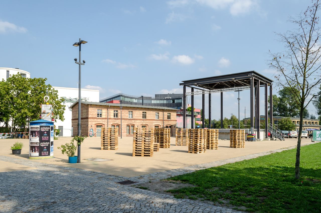 Das Gelände der Schiffbauergasse ist geprägt von alten Industriebauten, die zum Teil aus dem 19. Jahrhundert stammen. Zwischen 1864 und 1880 angelegt als Garde-Ulanen-Kaserne, entstanden hier neben Unterkünften auch ein Reihe von Reithallen und -ställen, eine Militärwäscherei und in der Folge verschiedene Gebäude des andienenden Gewerbes. Die verschiedenen Klinkerbauten, das in den 60er Jahren entstandenen Gaswerk mit der Kokerei und den runden Gasometern sowie die großzügigen Flächen auf dem Areal bieten hervorragende Kulissen für Außendrehs. Der marode Charme der überkommenen Industriearchitektur, die Vielfalt der verschiednen Gebäude und Flächen, sowie die entwickelte Infrastruktur auf dem Stand 2000 boten und bieten verschiedenen Film- und TV-Produktionen beste Arbeitsbedingungen. Der Gesamtkomplex von ca. 10 ha wird als integrierter Kulturstandort entwickelt.