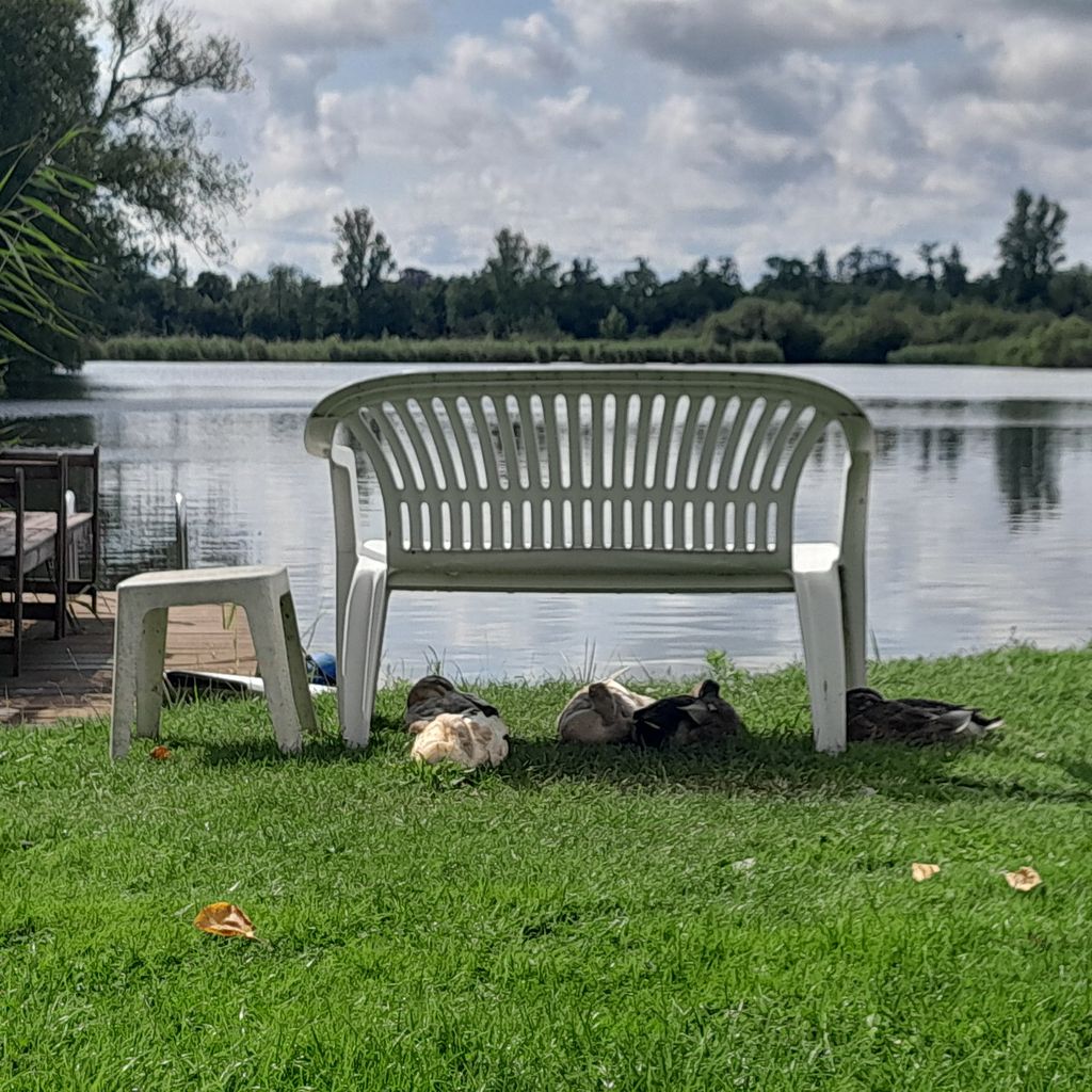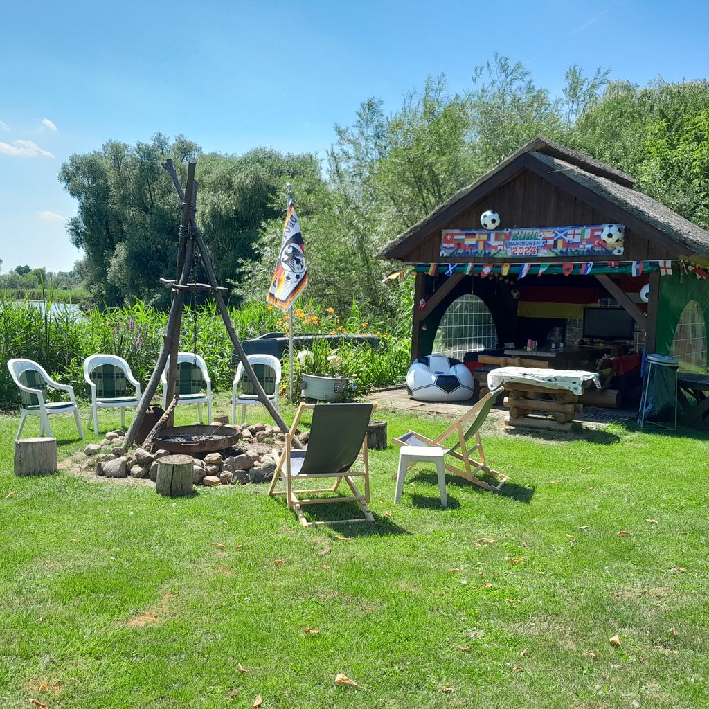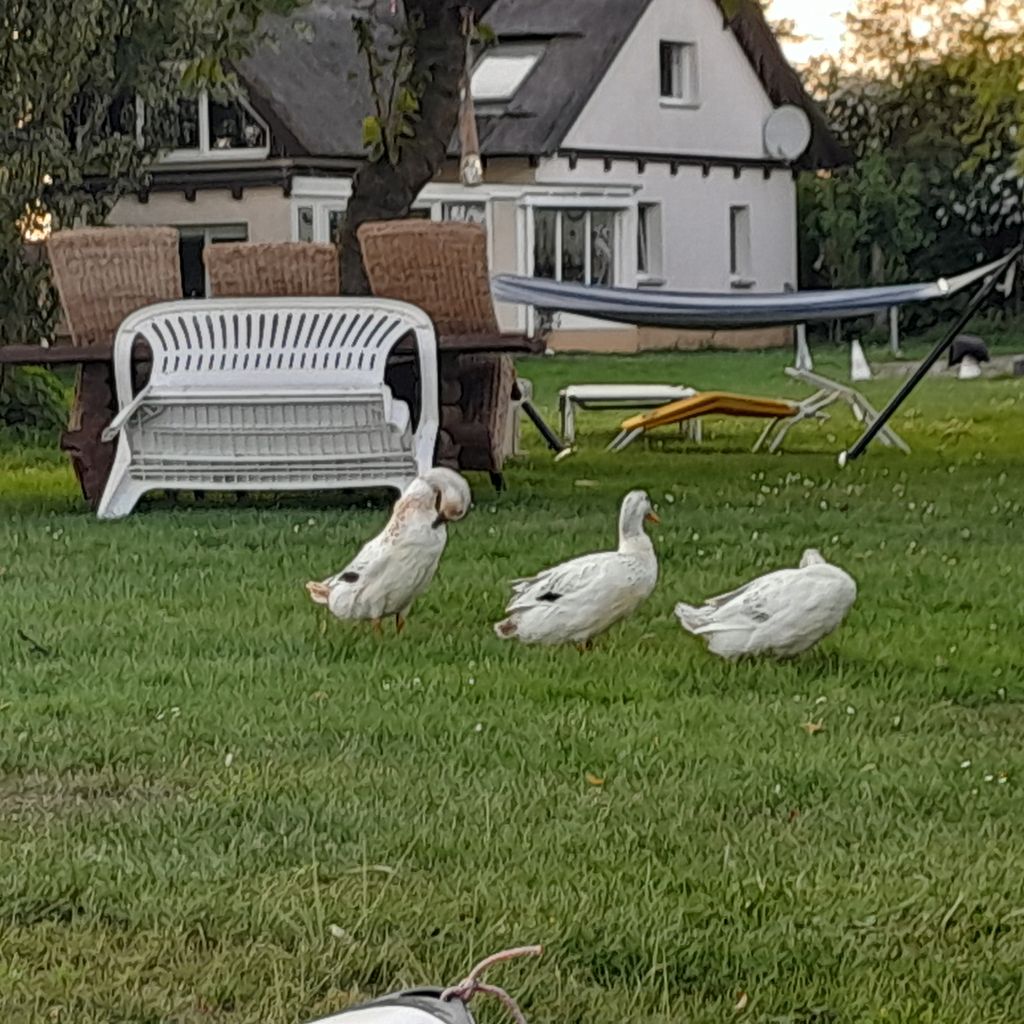 Es gibt ein Kajak, ein Ruderboot und einen kleinen Steg. Es befindet sich ferner ein Laufentenstall auf dem Grundstück, die 8 Laufenten sind größtenteils handzahm und freilaufend in Symbiose mit den 2 Hunden und Katzen.