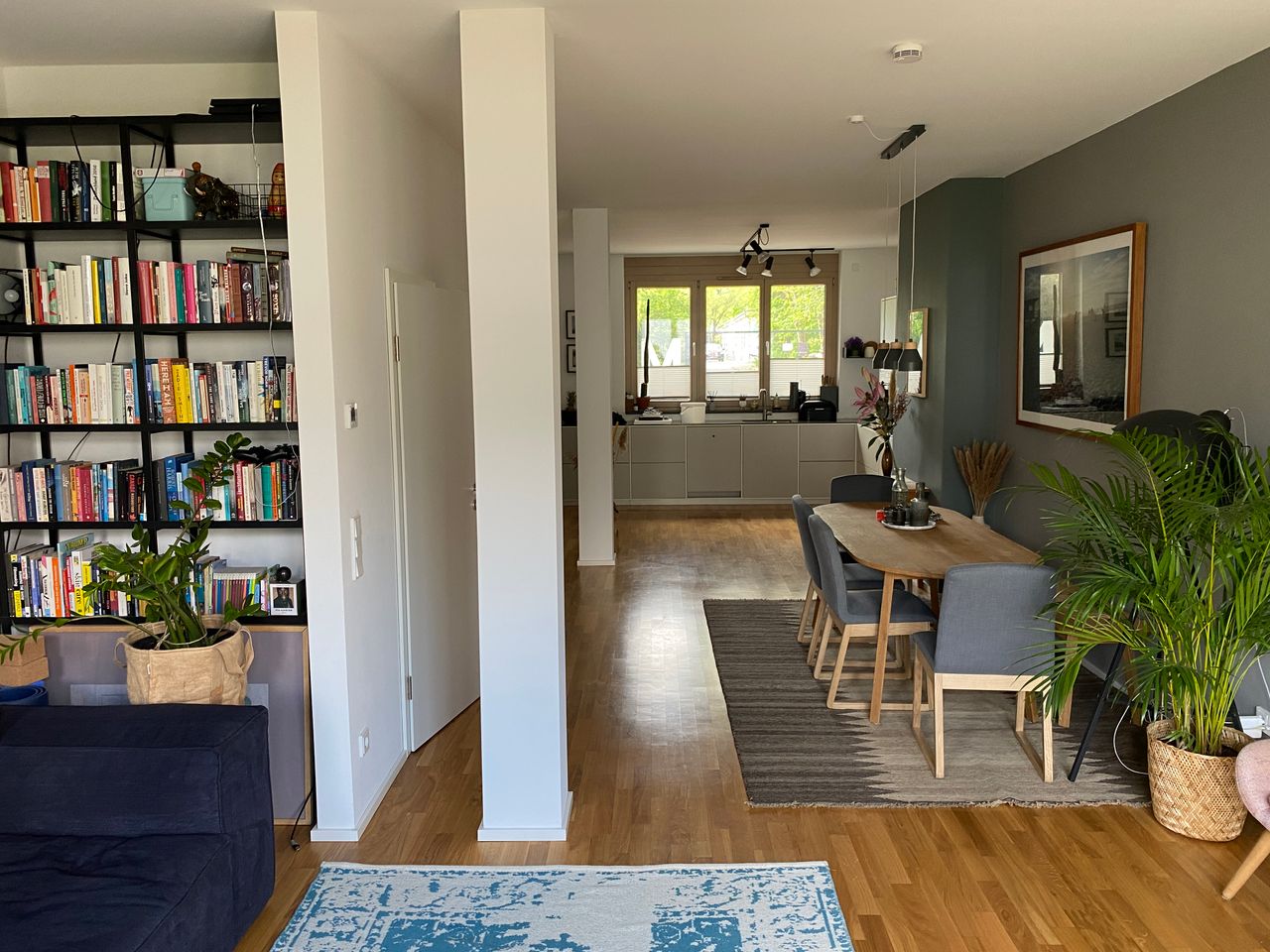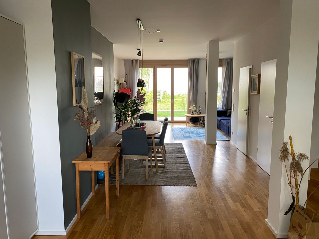 Die 110 qm große 4-Zimmerwohnung Maisonett Wohnung wurde 2020 neu gebaut. Im EG liegen Küche/Wohn- und Essbereich in einem durchgehenden Raum (55m2) - im 1.OG sind Schlafzimmer/2 Kinderzimmer und Badezimmer. Am Wohnbereich liegt eine private Terrasse mit Garten.