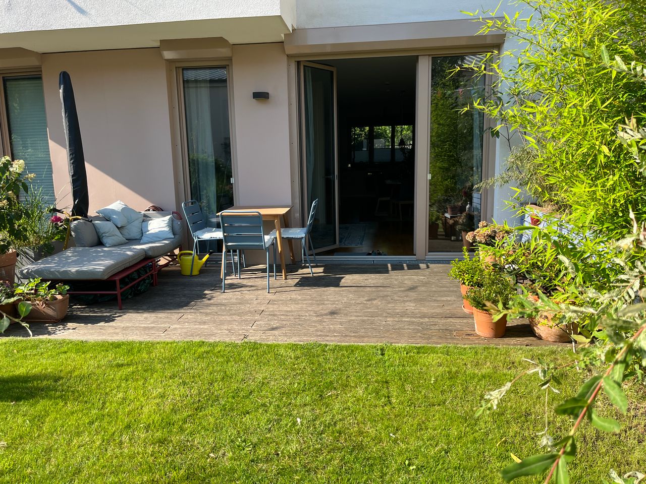 The 110 sqm 4-room duplex apartment was newly built in 2020. On the ground floor are kitchen/living and dining area in one continuous room (55m2) - on the 1st floor there are bedrooms/2 children's rooms and a bathroom. The living area has a private terrace with garden.