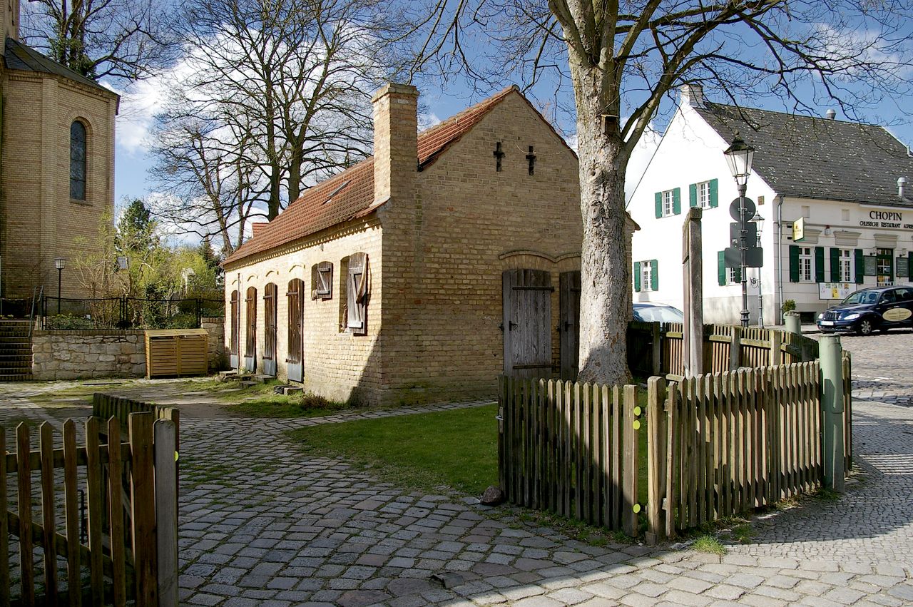 Herz des Wilhelmplatzes ist die mittelalterliche „Kirche am Stölpchensee“. Anliegend Wohnhäuser, darunter ein wiederhergerichtetes ehemaligen Kossätenhaus.