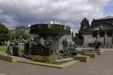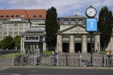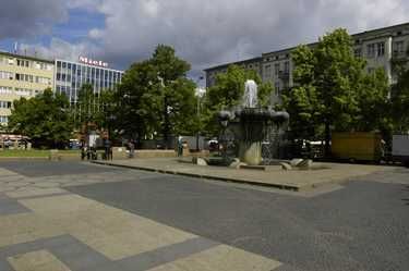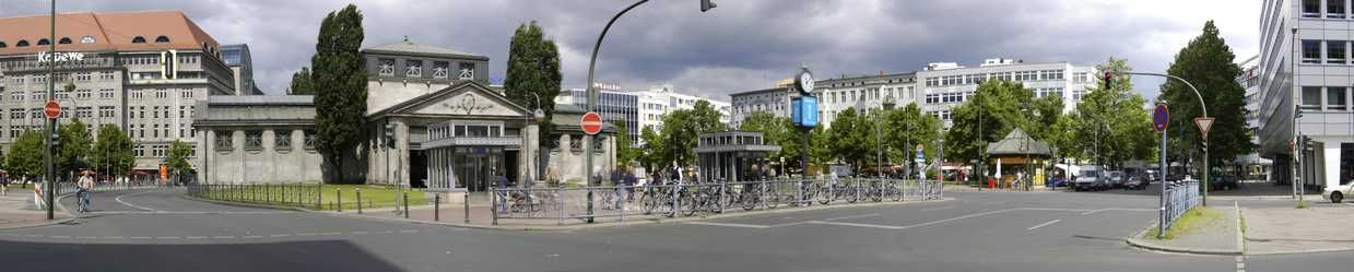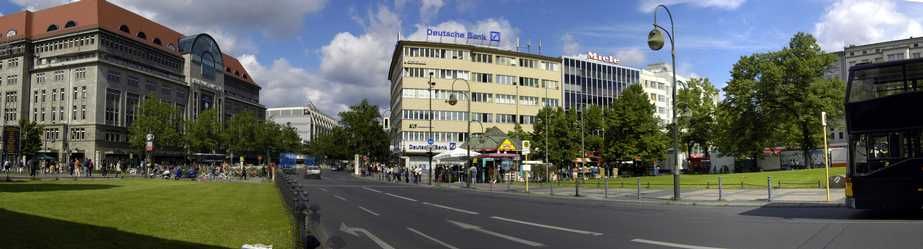 Platz links und rechts von Tauentzienstraße, Brunnen, Gebäude verschiedener Baustile und Epochen, viele Touristen