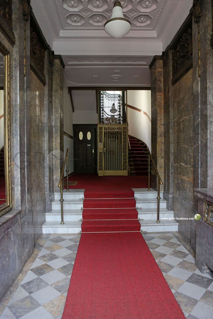 Sehr schöne Altbauwohnung. Drei Zimmer mit Stuck, Parkett, Blick auf den Lietzensee im Hochparterre. Herrschaftlicher Eingang mit großen Spiegeln, Naturstein, rotem Teppich.