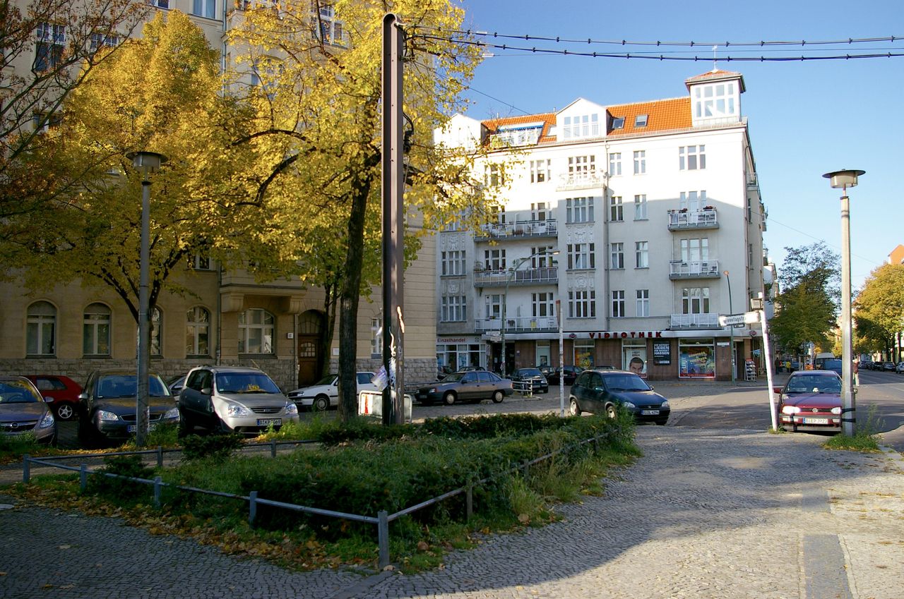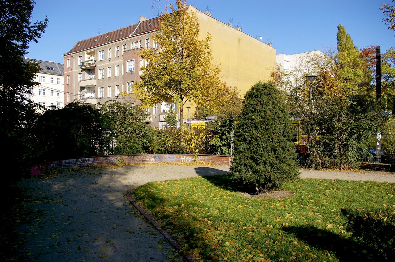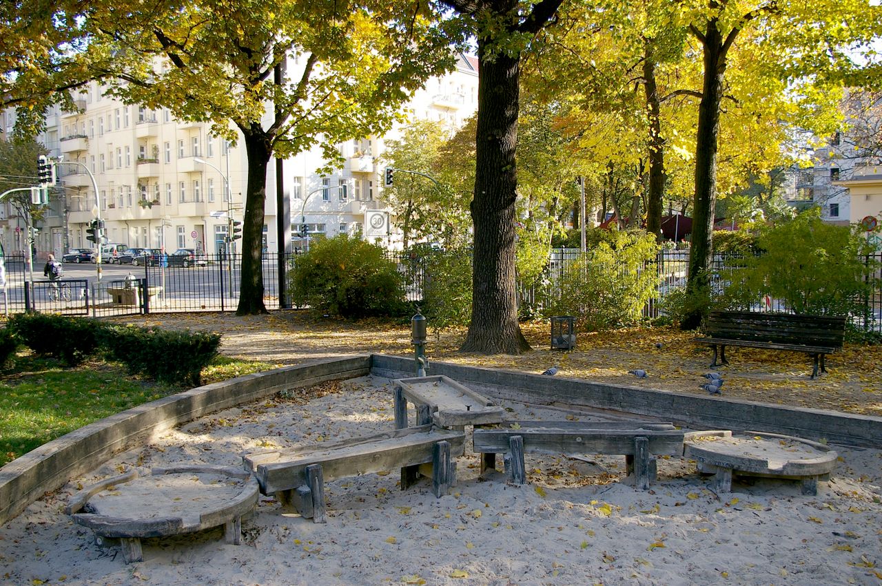 Kleiner Platz mit wenig genutztem Park, einer kleinen Rasenfläche, Sandkasten und Parkbänken. Rund um den Platz befinden sich hauptsächlich Wohnhäuser (Gründerzeit).