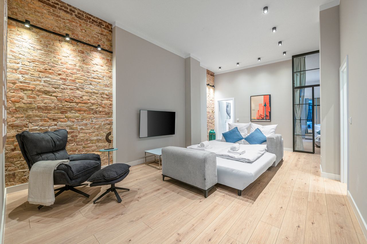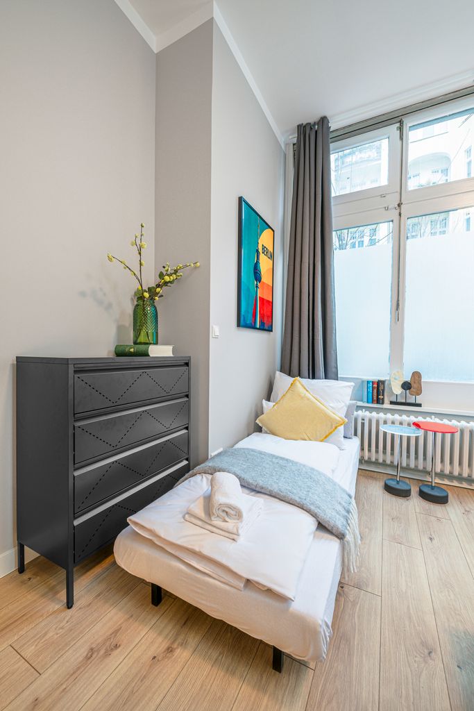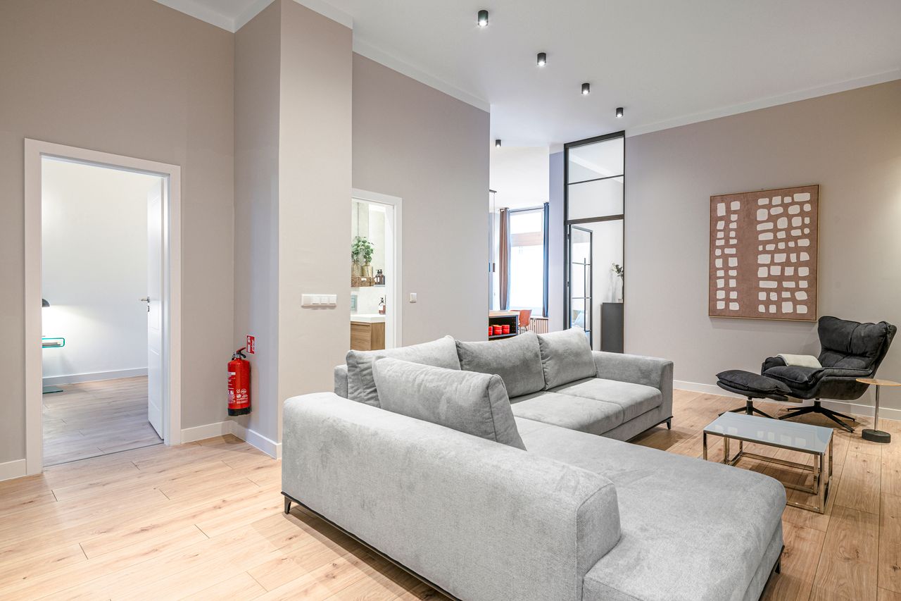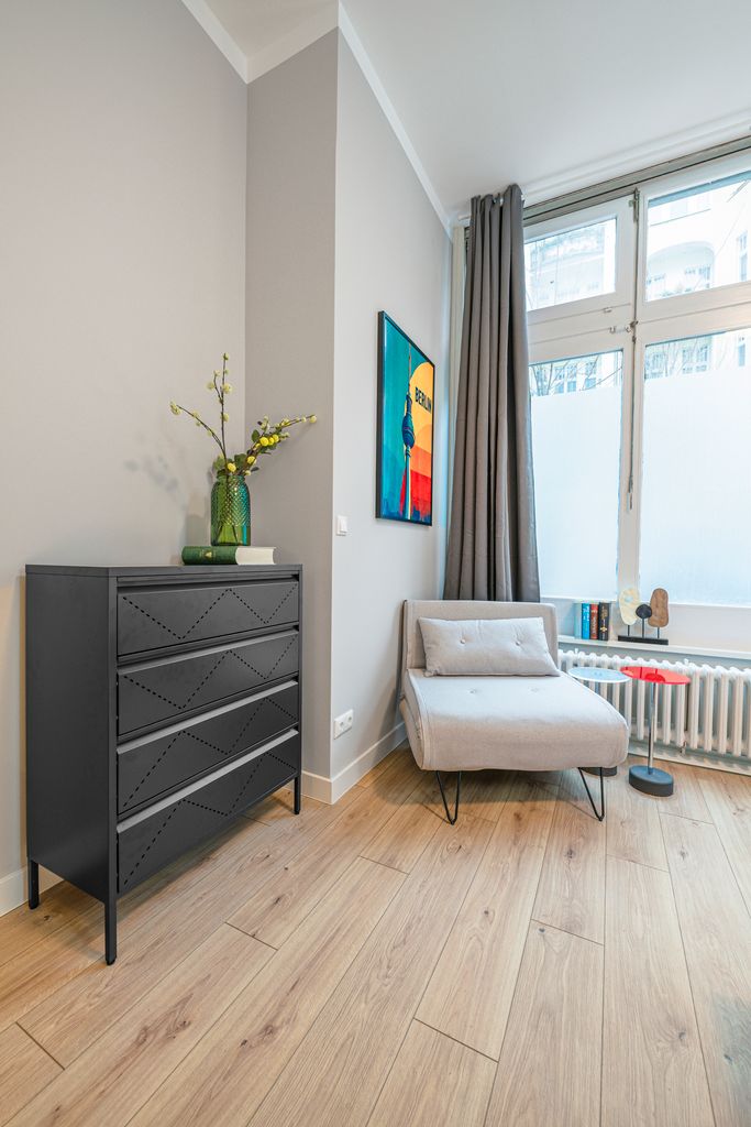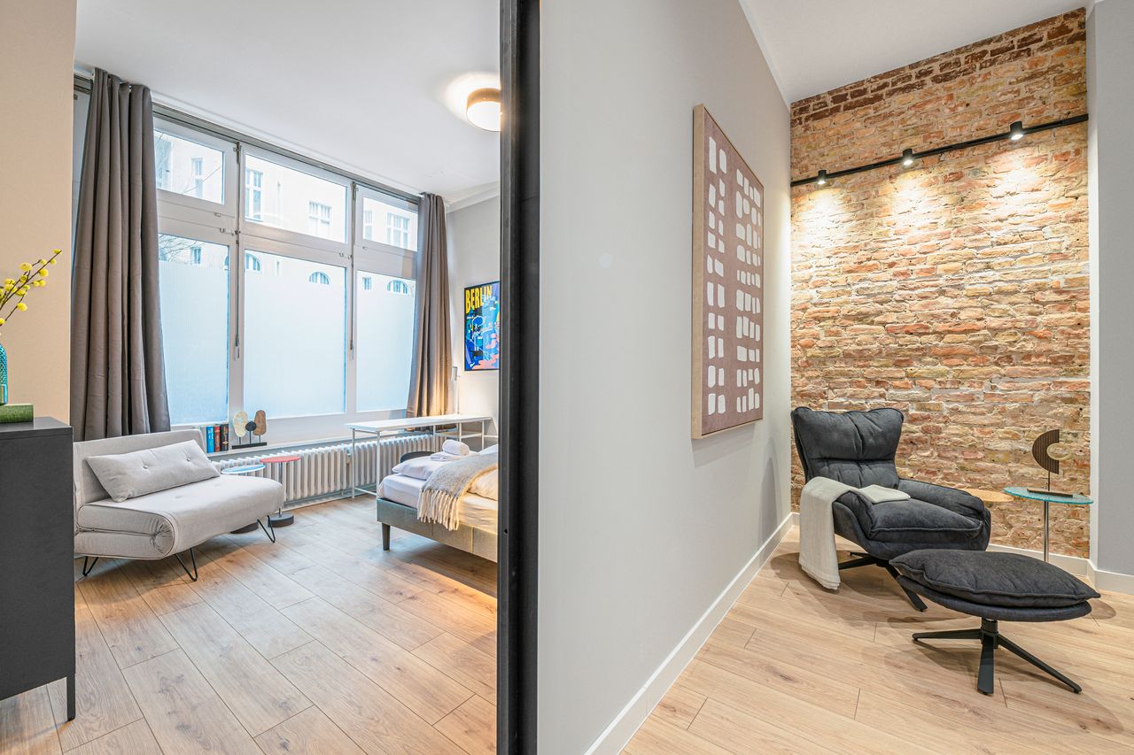 Bei dem Apartment handelt es sich um eine umgebaute Gewerbeeinheit im Erdgeschoss mit einem eigenen Zugang direkt von der Straße.
