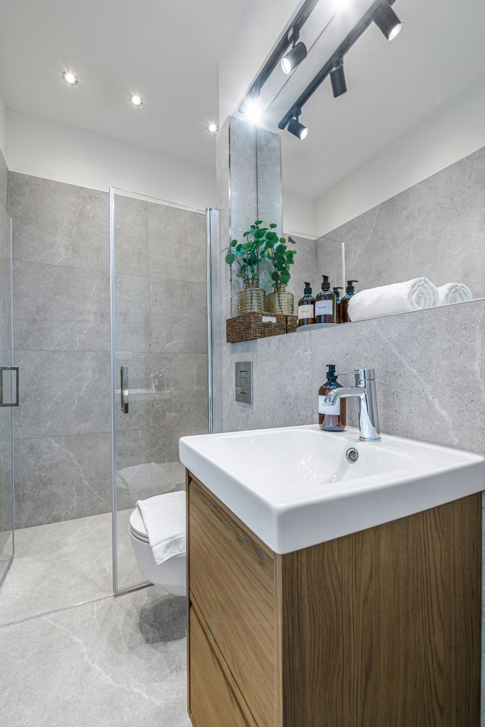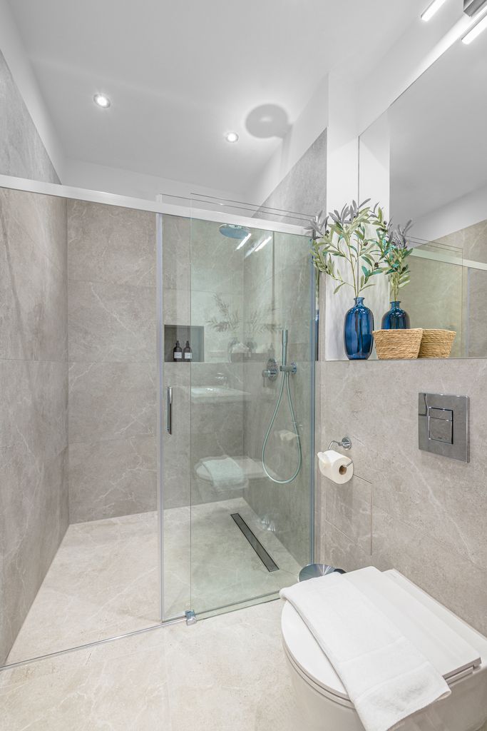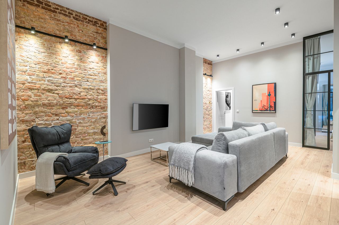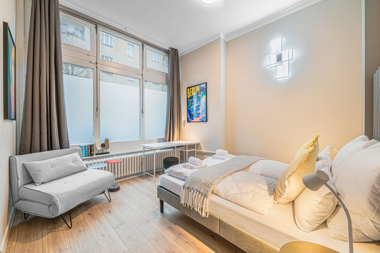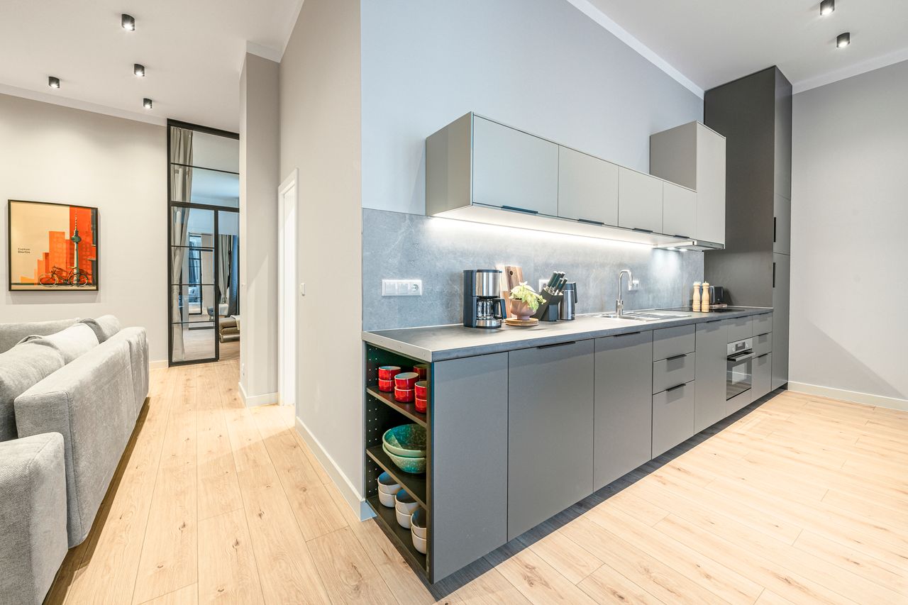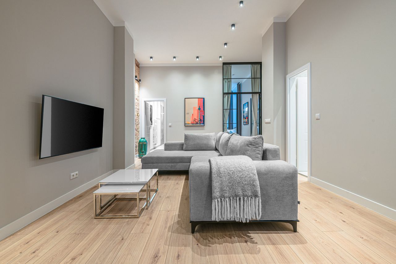 Bei dem Apartment handelt es sich um eine umgebaute Gewerbeeinheit im Erdgeschoss mit einem eigenen Zugang direkt von der Straße.